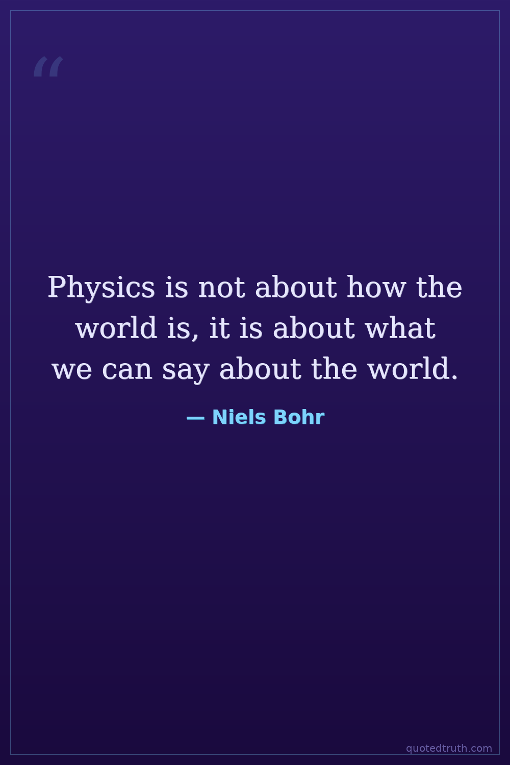 "It is wrong to think that the task of physics is to find out how nature is. Physics concerns what we can say about nature."