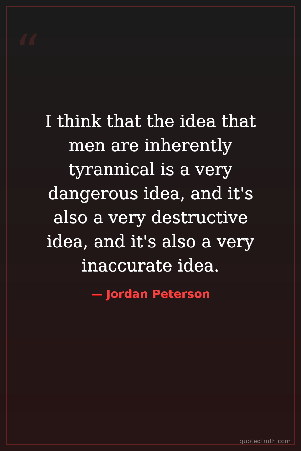 I think that the idea that men are inherently tyrannical is a very dangerous idea, and it's also a very destructive idea, and it's also a very inaccurate idea.