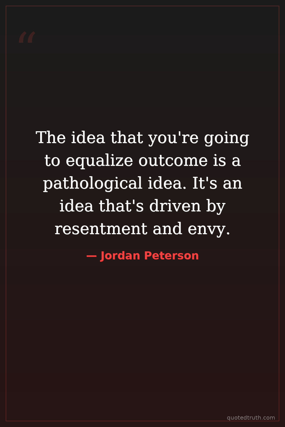 The idea that you're going to equalize outcome is a pathological idea. It's an idea that's driven by resentment and envy.
