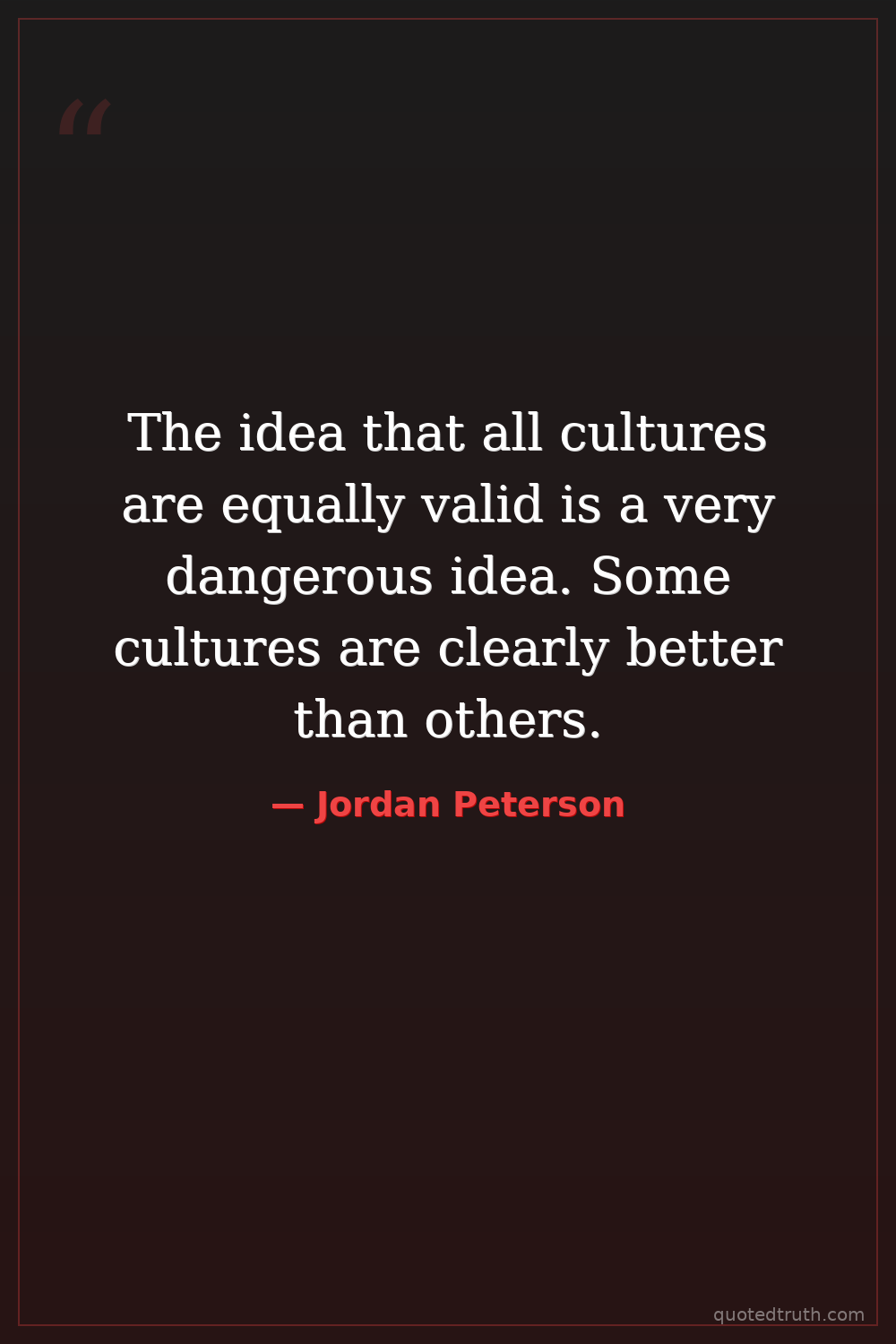 The idea that all cultures are equally valid is a very dangerous idea. Some cultures are clearly better than others.