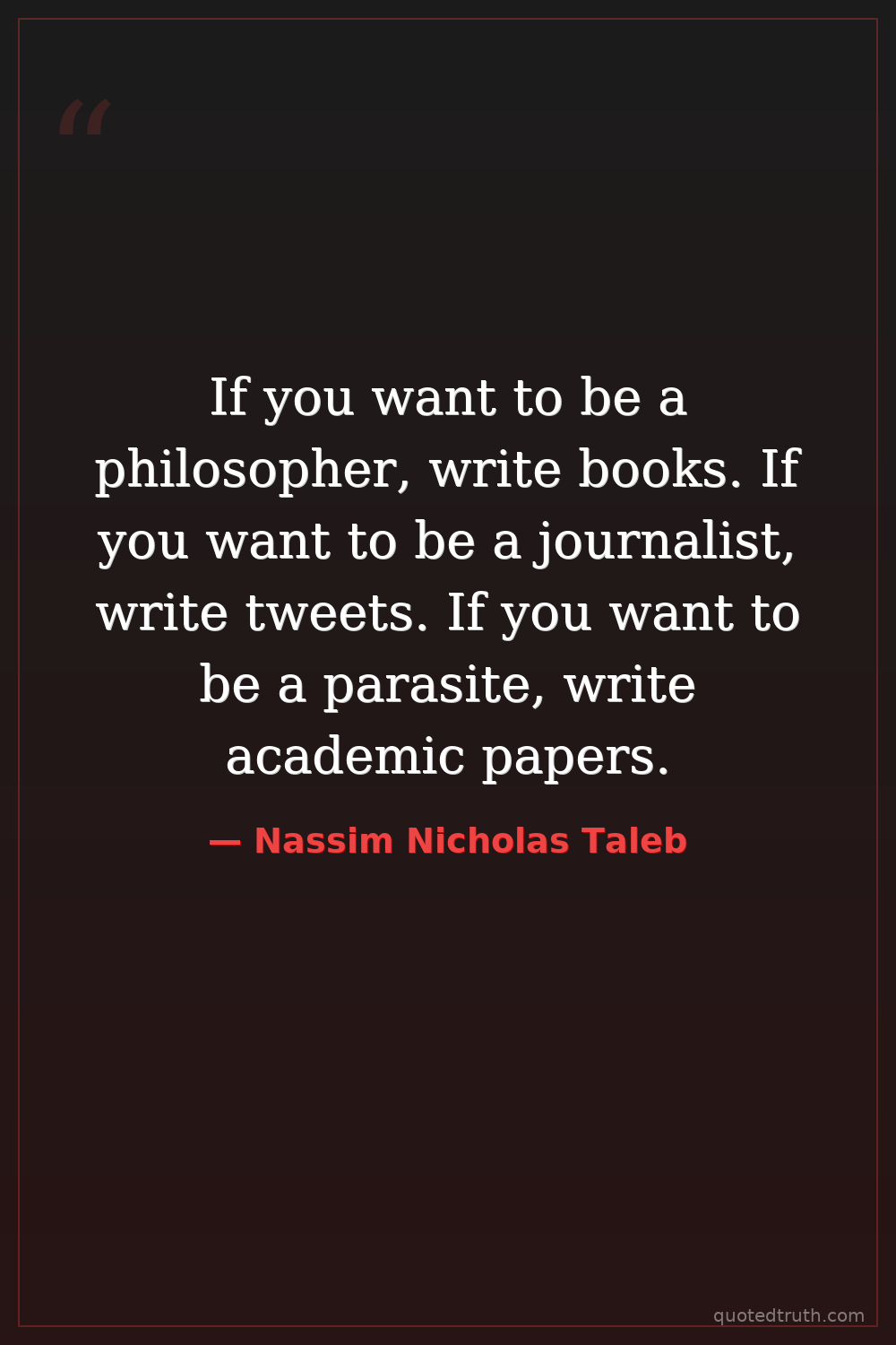 If you want to be a philosopher, write books. If you want to be a journalist, write tweets. If you want to be a parasite, write academic papers.