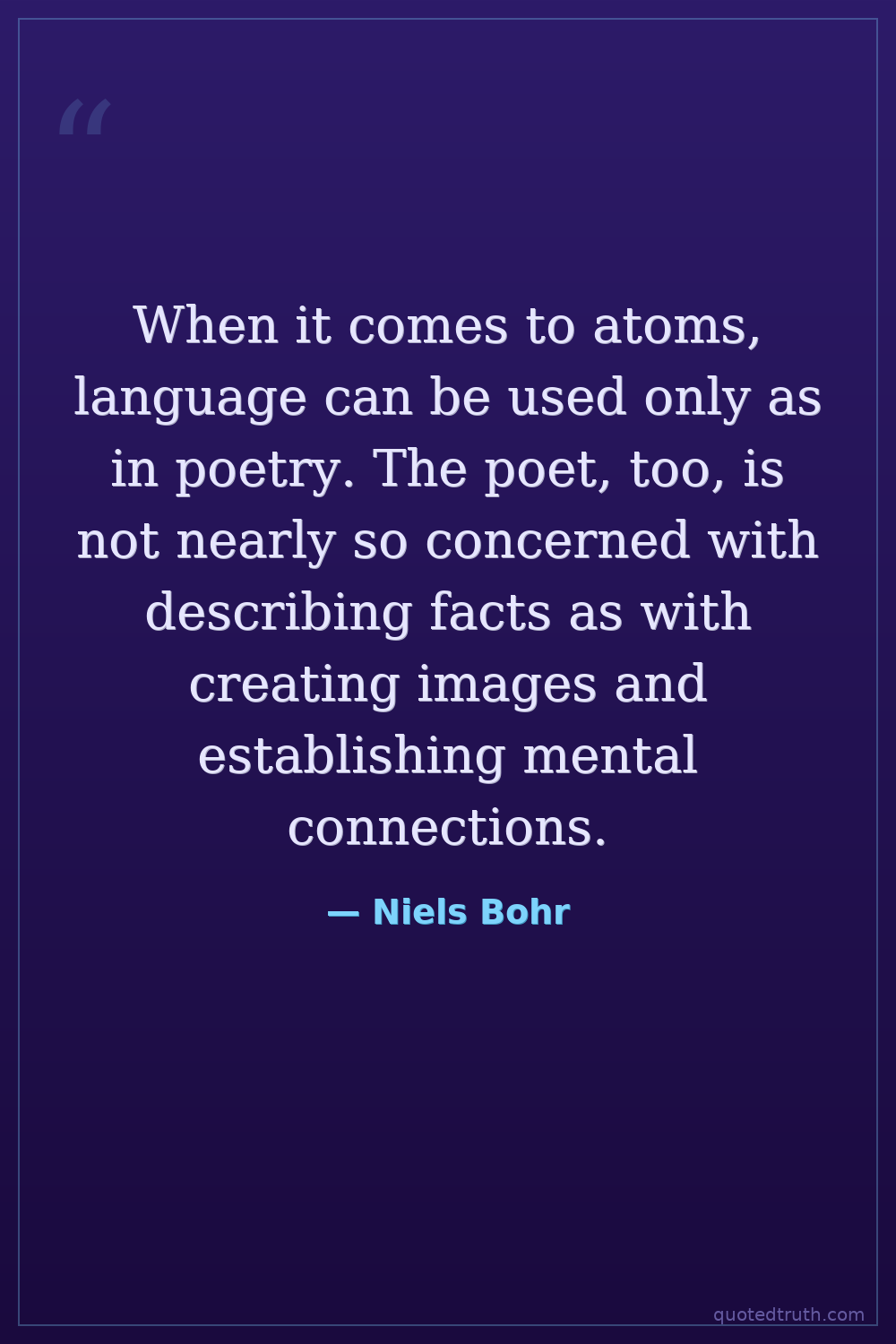 When it comes to atoms, language can be used only as in poetry. The poet, too, is not nearly so concerned with describing facts as with creating images and establishing mental connections.
