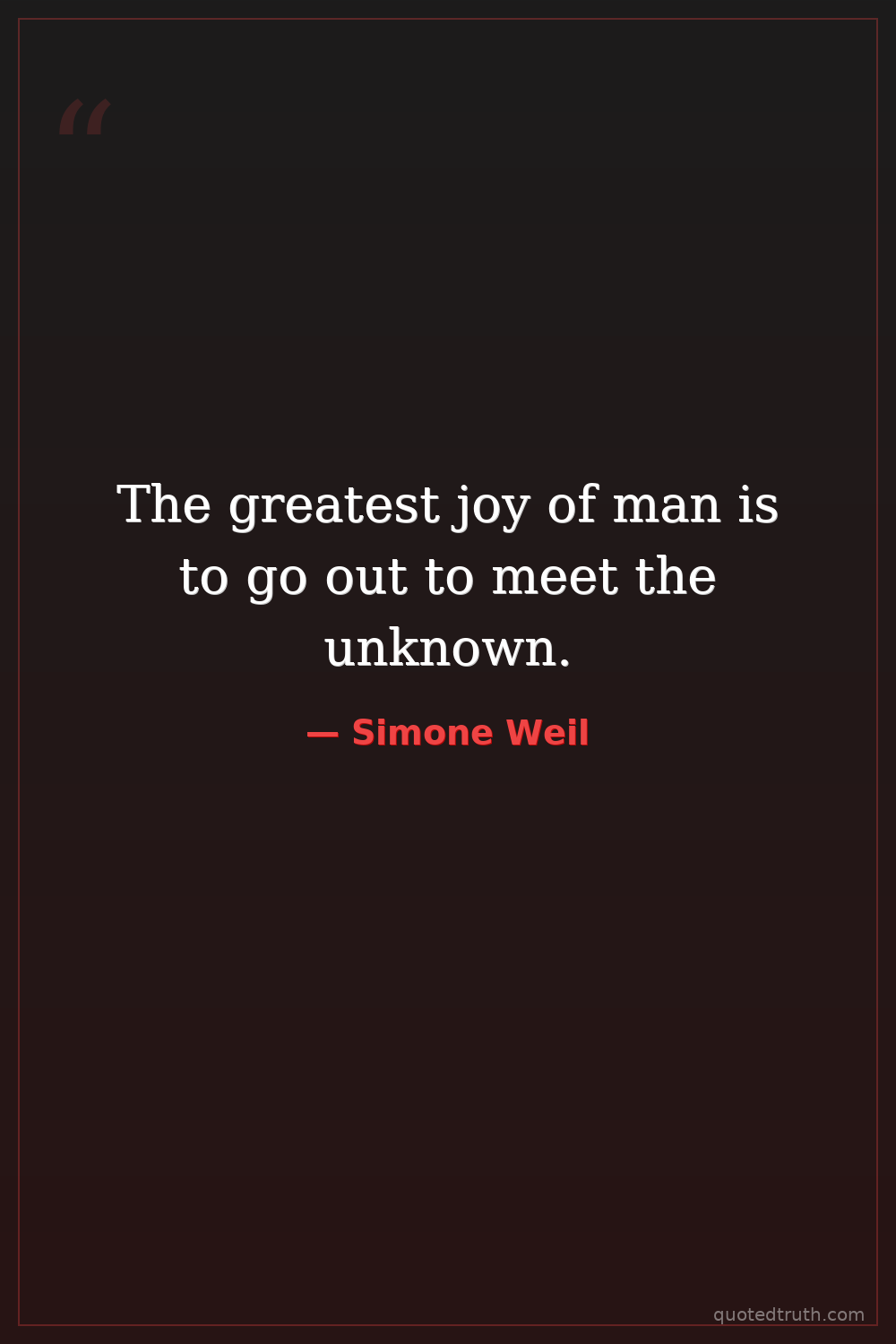 The greatest joy of man is to go out to meet the unknown.