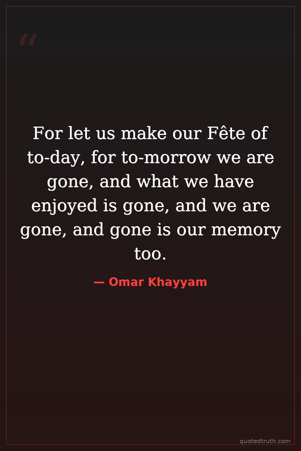 For let us make our Fête of to-day, for to-morrow we are gone, and what we have enjoyed is gone, and we are gone, and gone is our memory too.