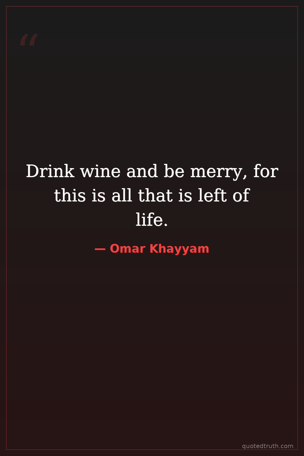 Drink wine and be merry, for this is all that is left of life.