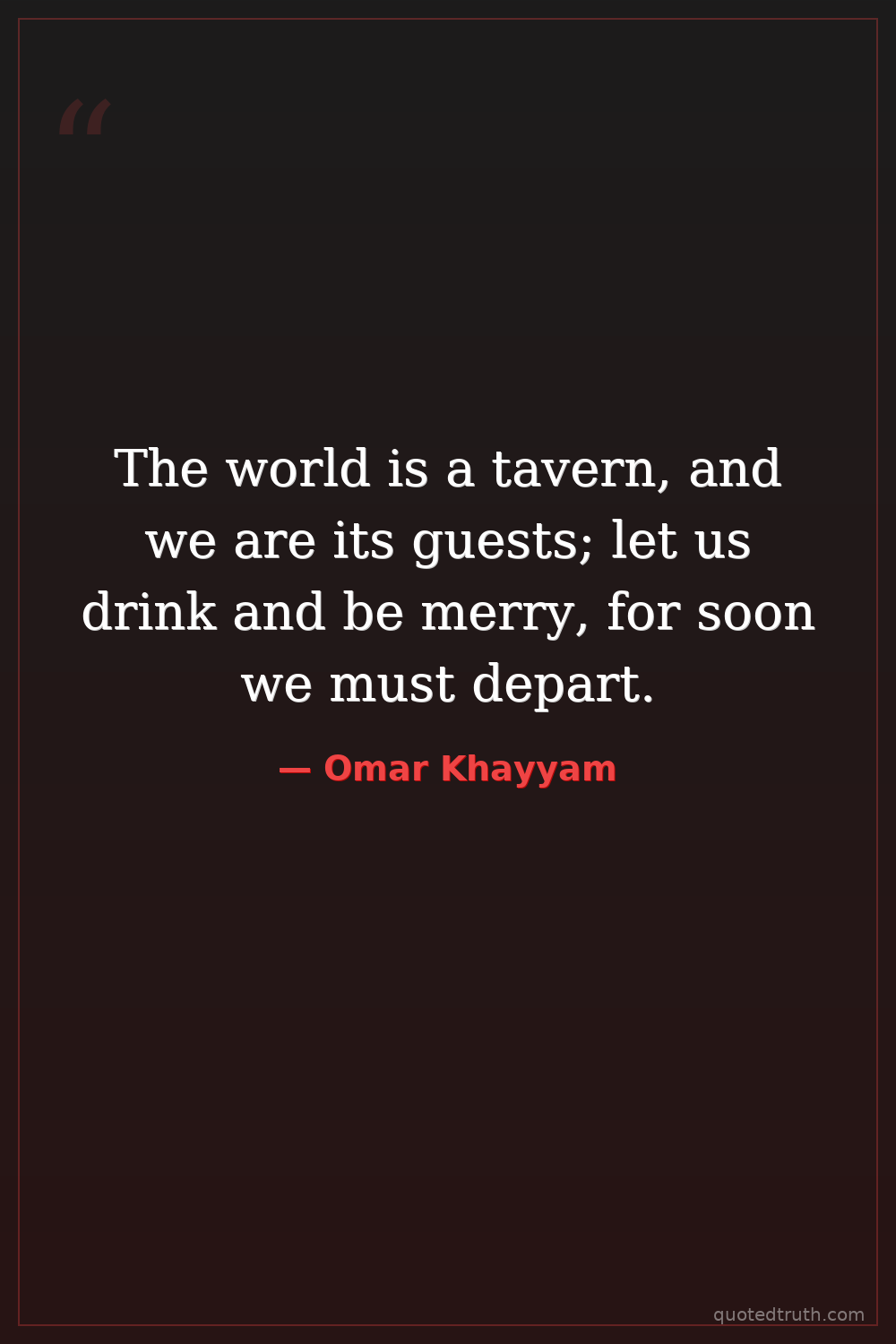 The world is a tavern, and we are its guests; let us drink and be merry, for soon we must depart.