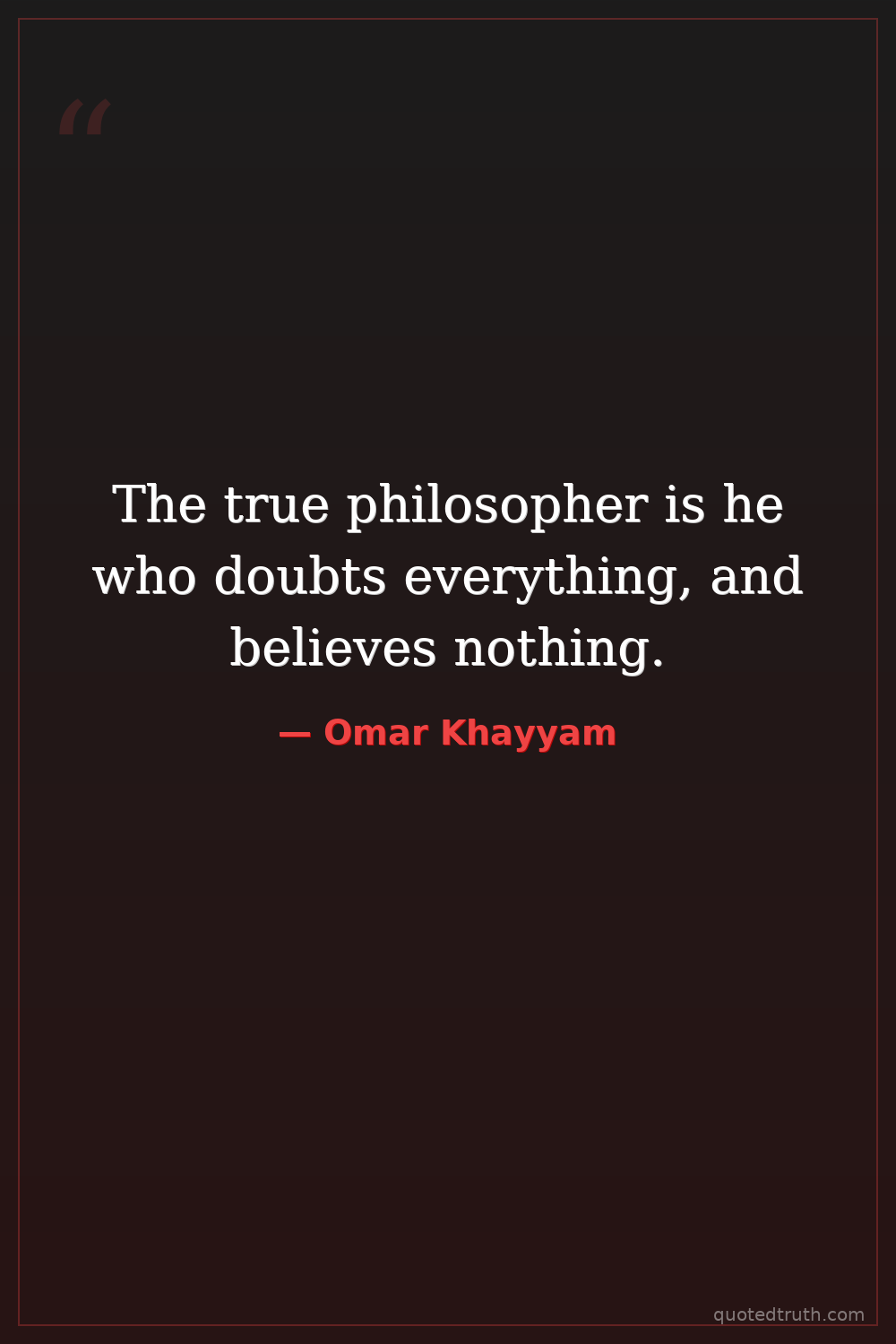 The true philosopher is he who doubts everything, and believes nothing.