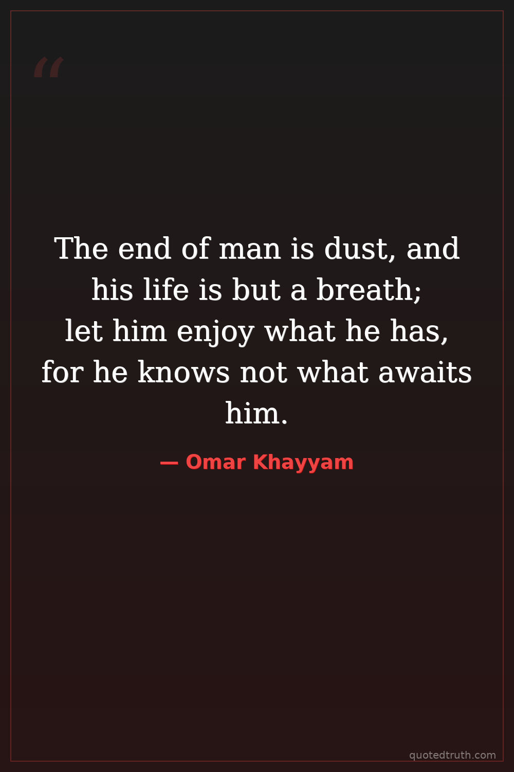 The end of man is dust, and his life is but a breath; let him enjoy what he has, for he knows not what awaits him.