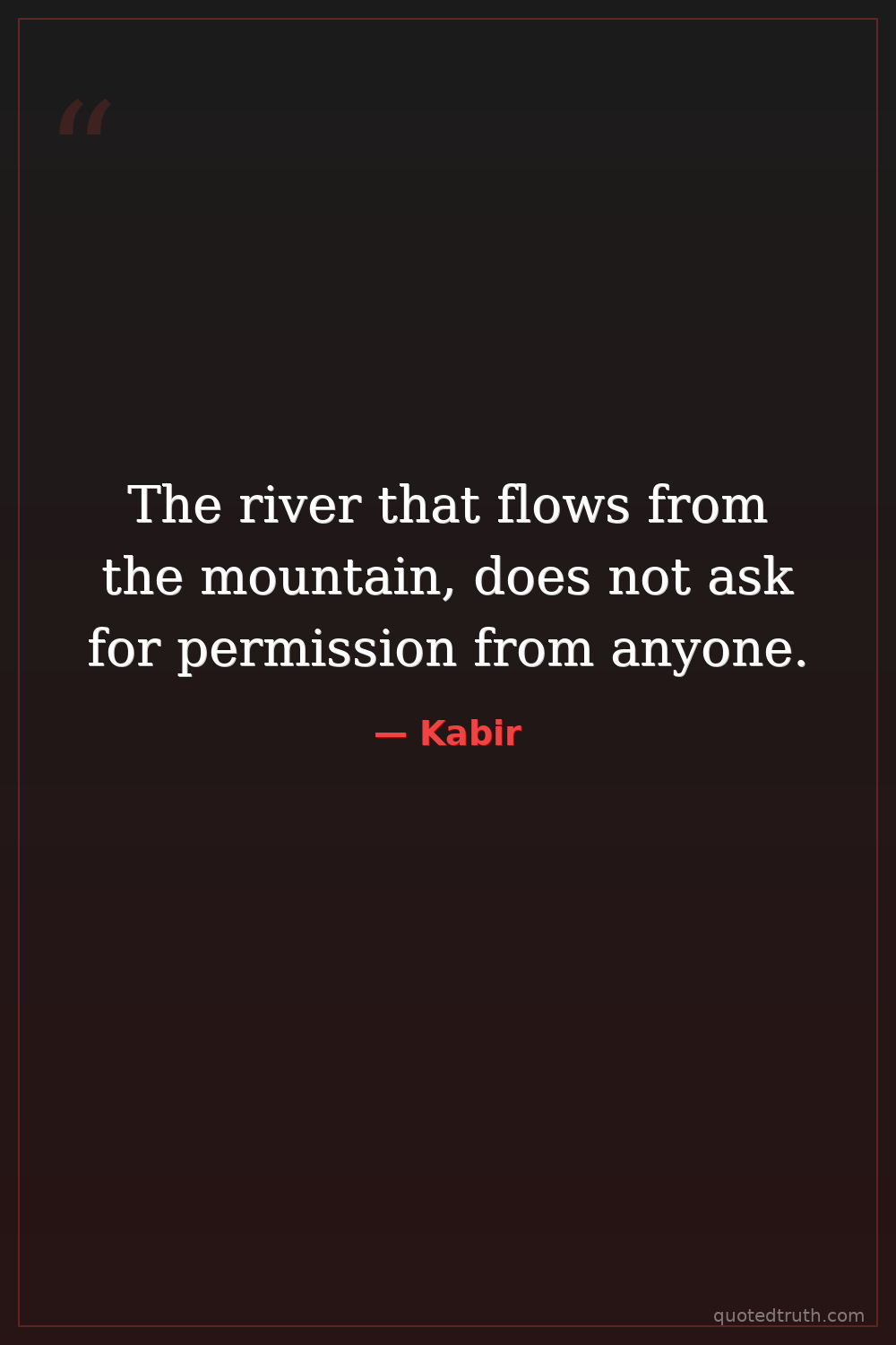 The river that flows from the mountain, does not ask for permission from anyone.