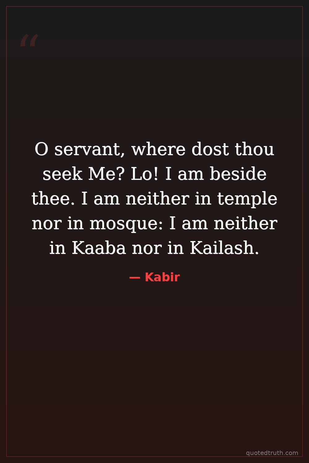 O servant, where dost thou seek Me? Lo! I am beside thee. I am neither in temple nor in mosque: I am neither in Kaaba nor in Kailash.