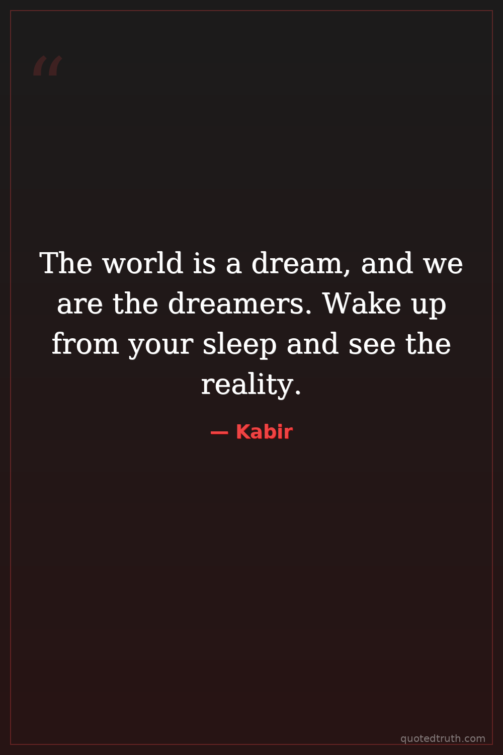 The world is a dream, and we are the dreamers. Wake up from your sleep and see the reality.
