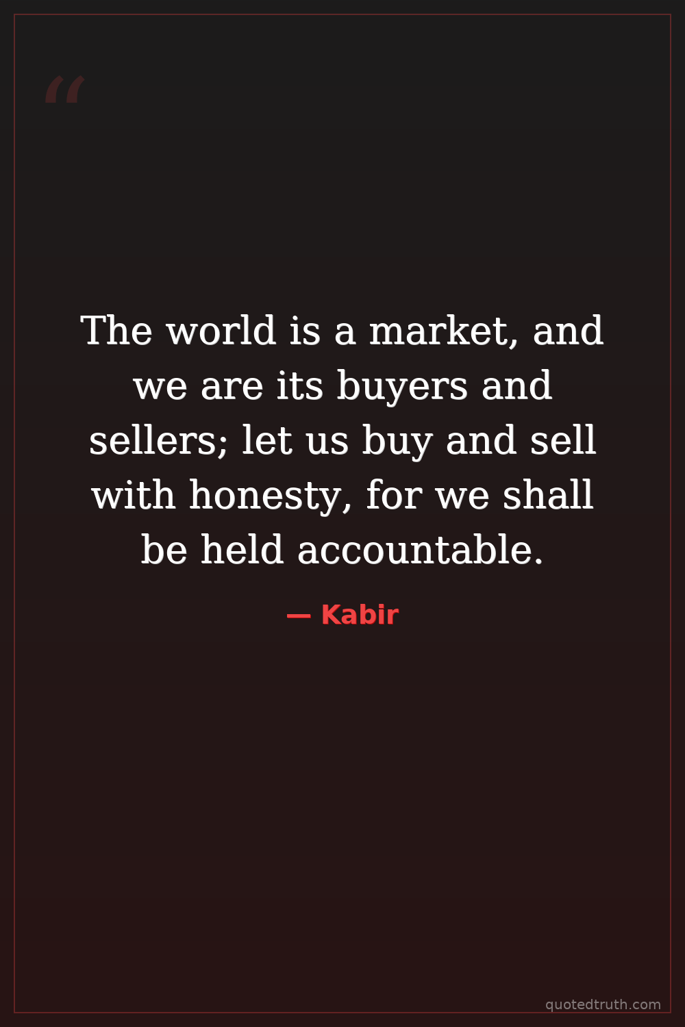 The world is a market, and we are its buyers and sellers; let us buy and sell with honesty, for we shall be held accountable.