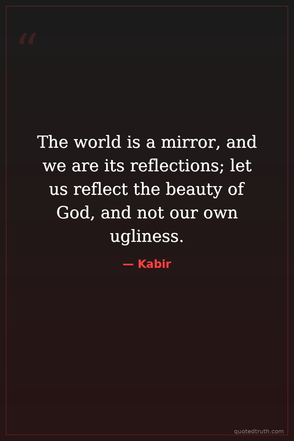 The world is a mirror, and we are its reflections; let us reflect the beauty of God, and not our own ugliness.