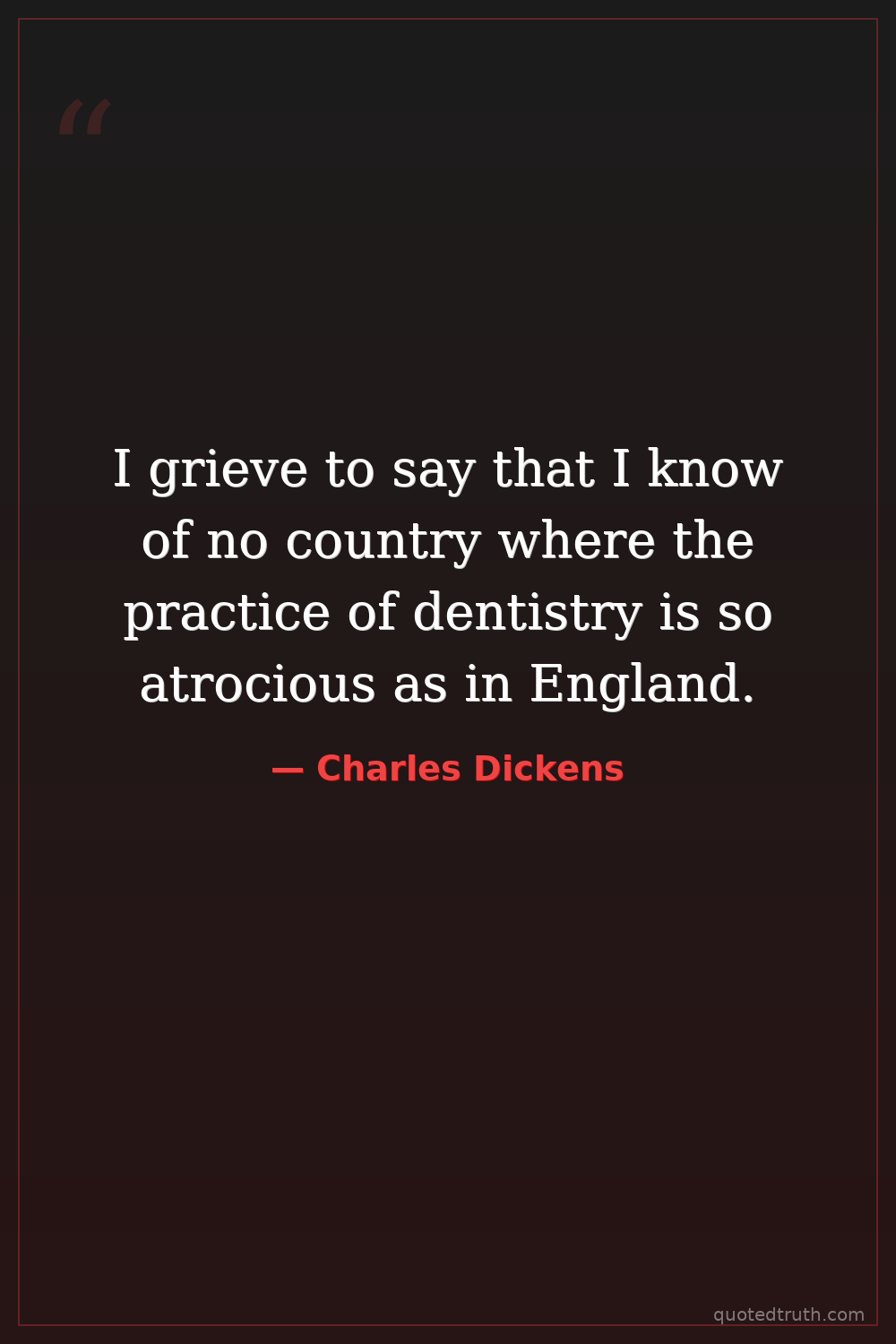 I grieve to say that I know of no country where the practice of dentistry is so atrocious as in England.
