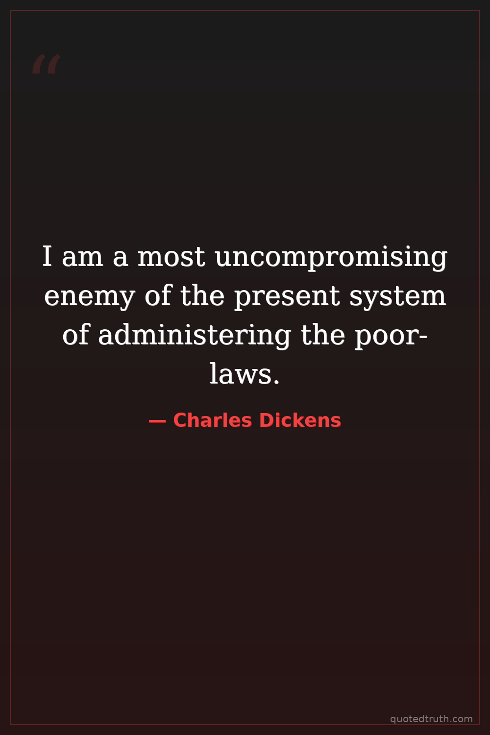 I am a most uncompromising enemy of the present system of administering the poor-laws.