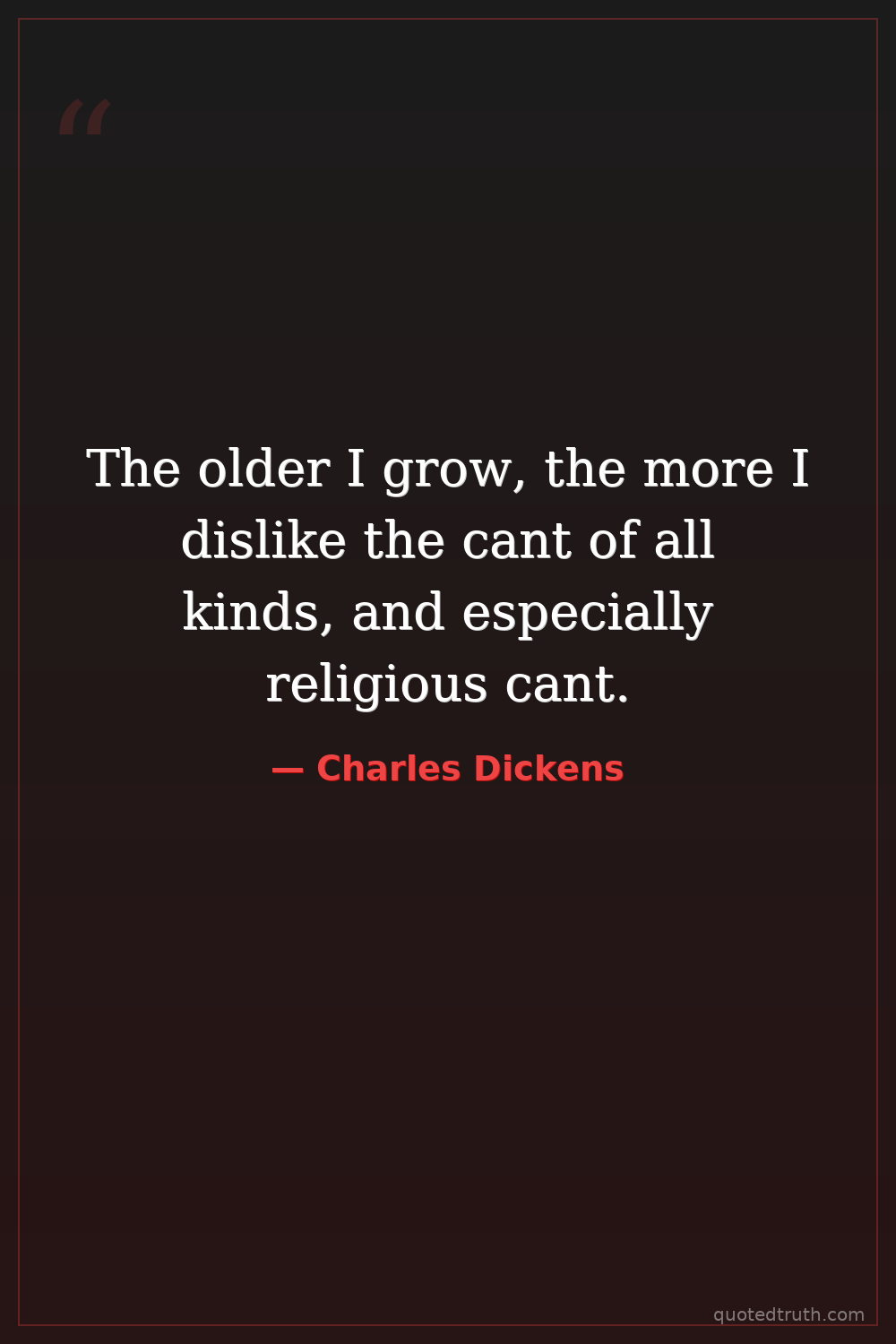 The older I grow, the more I dislike the cant of all kinds, and especially religious cant.