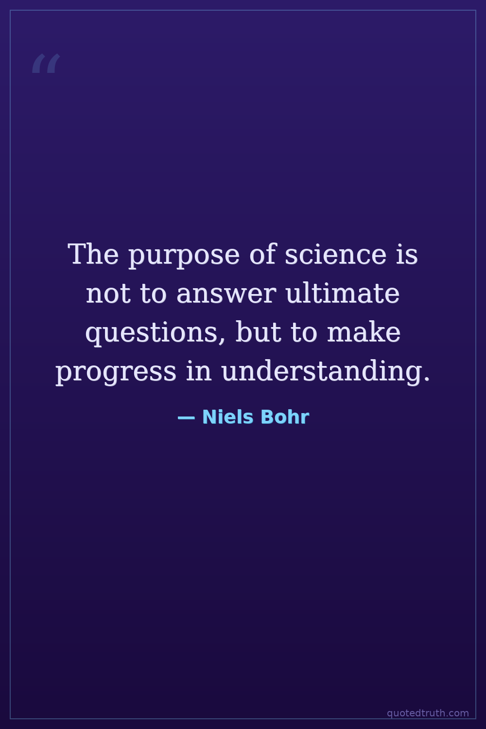 The purpose of science is not to answer ultimate questions, but to make progress in understanding.