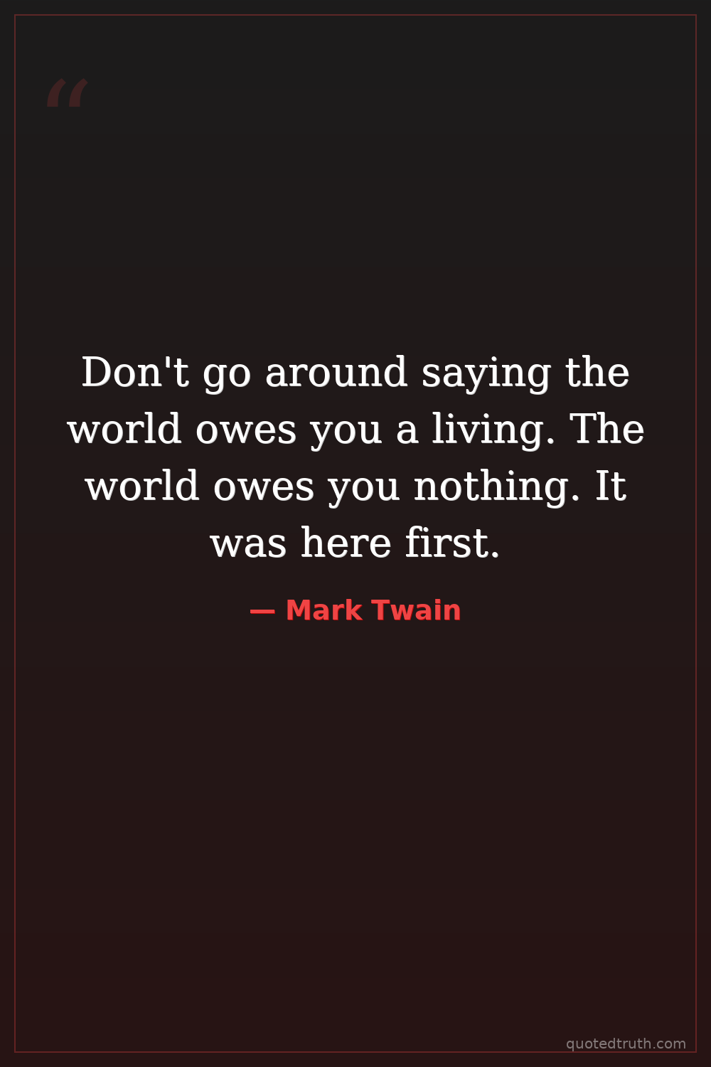 Don't go around saying the world owes you a living. The world owes you nothing. It was here first.