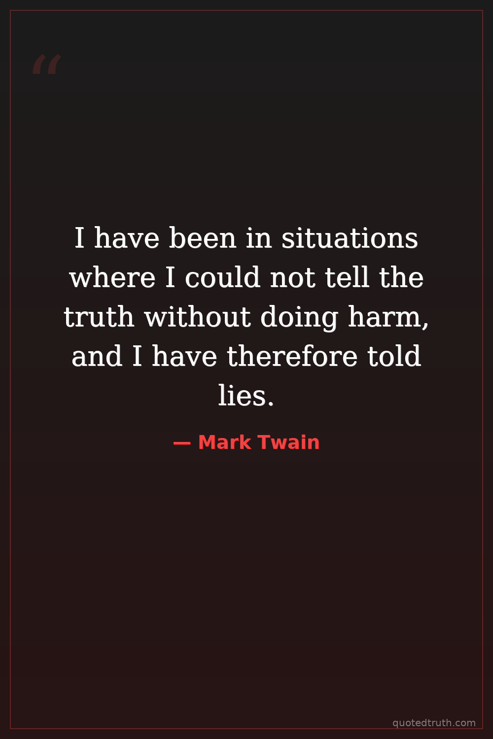I have been in situations where I could not tell the truth without doing harm, and I have therefore told lies.