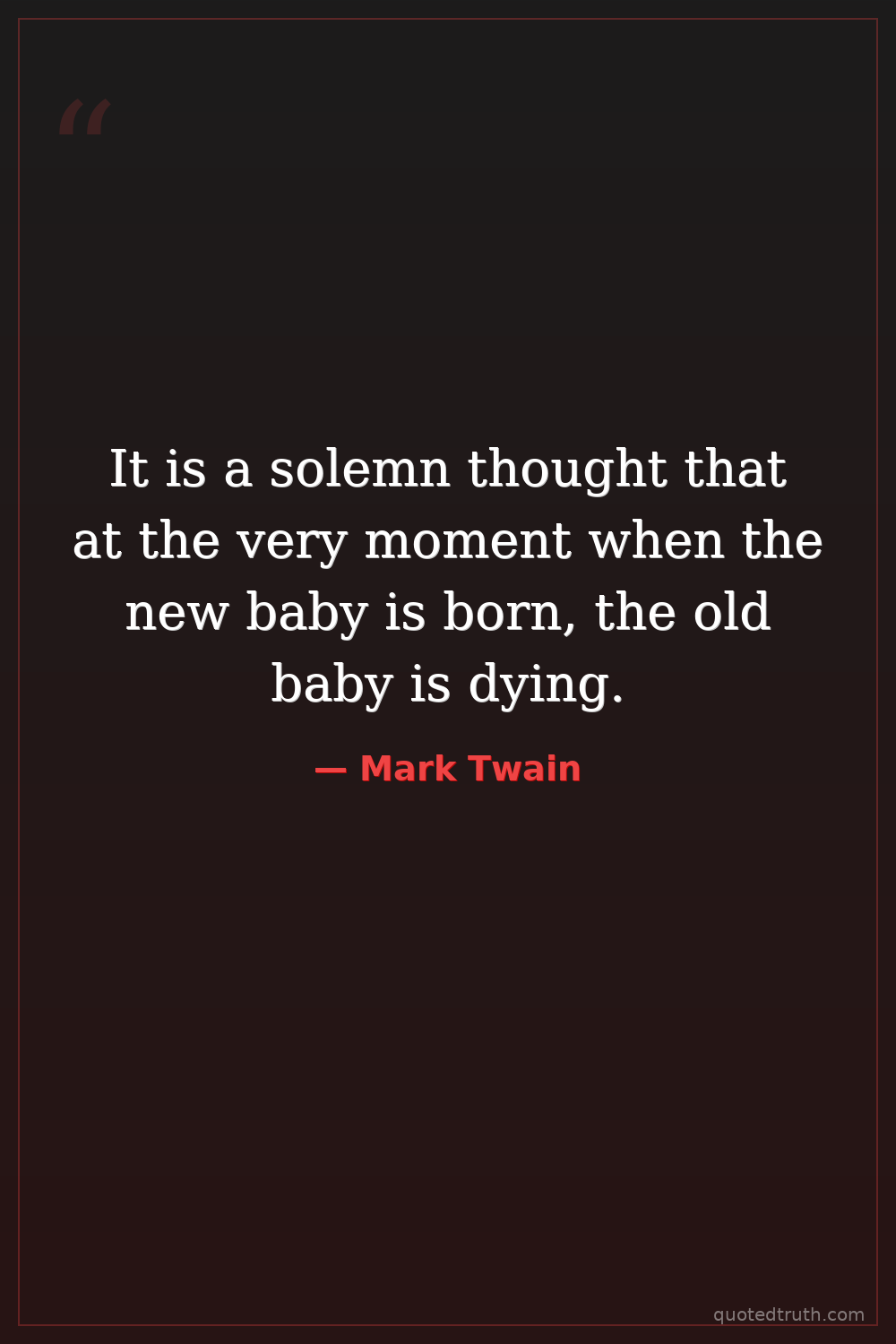 It is a solemn thought that at the very moment when the new baby is born, the old baby is dying.