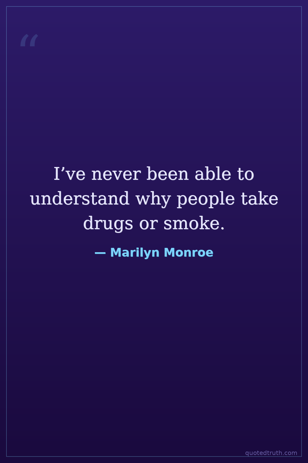 I’ve never been able to understand why people take drugs or smoke.
