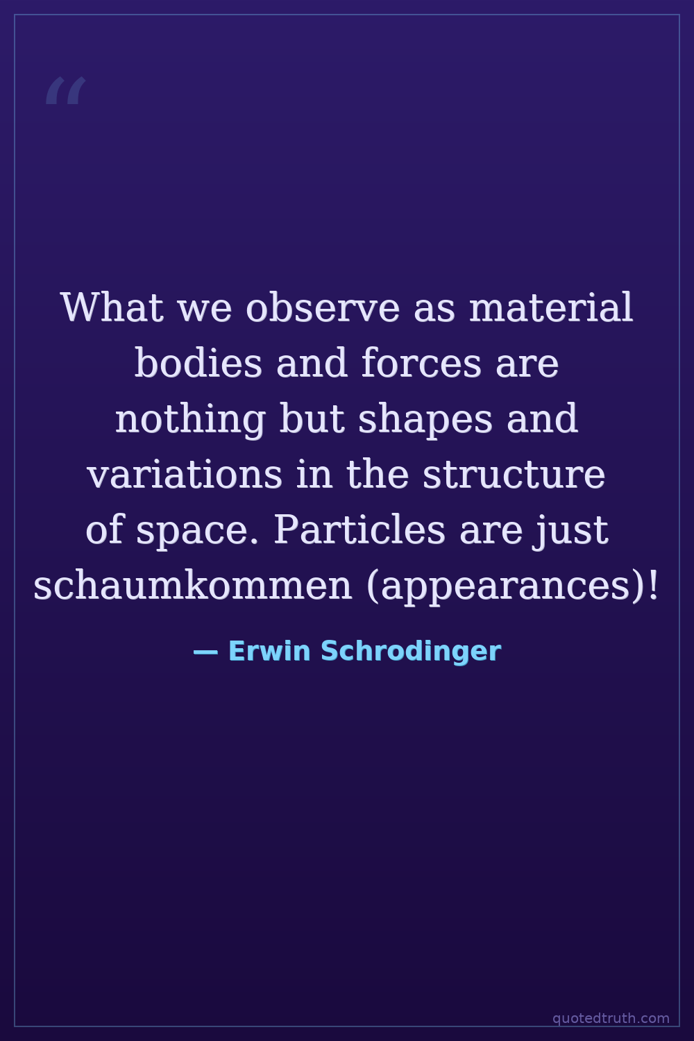What we observe as material bodies and forces are nothing but shapes and variations in the structure of space. Particles are just schaumkommen (appearances)!