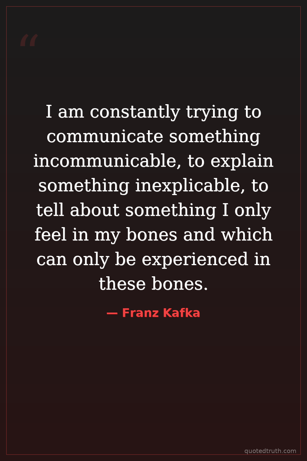 I am constantly trying to communicate something incommunicable, to explain something inexplicable, to tell about something I only feel in my bones and which can only be experienced in these bones.