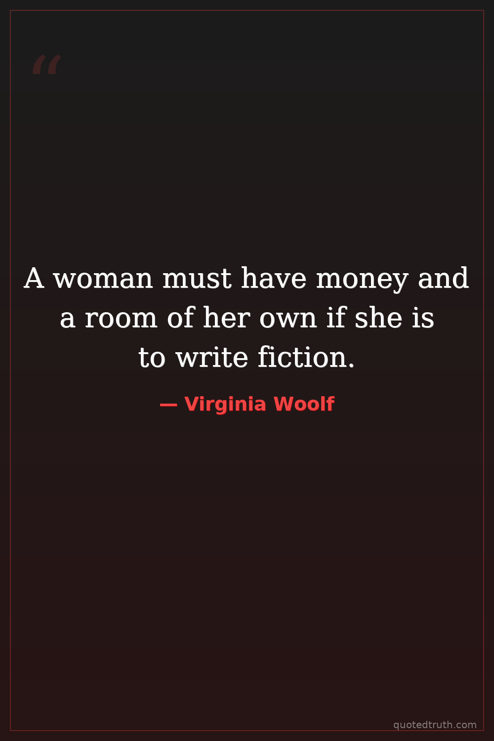 A woman must have money and a room of her own if she is to write fiction.