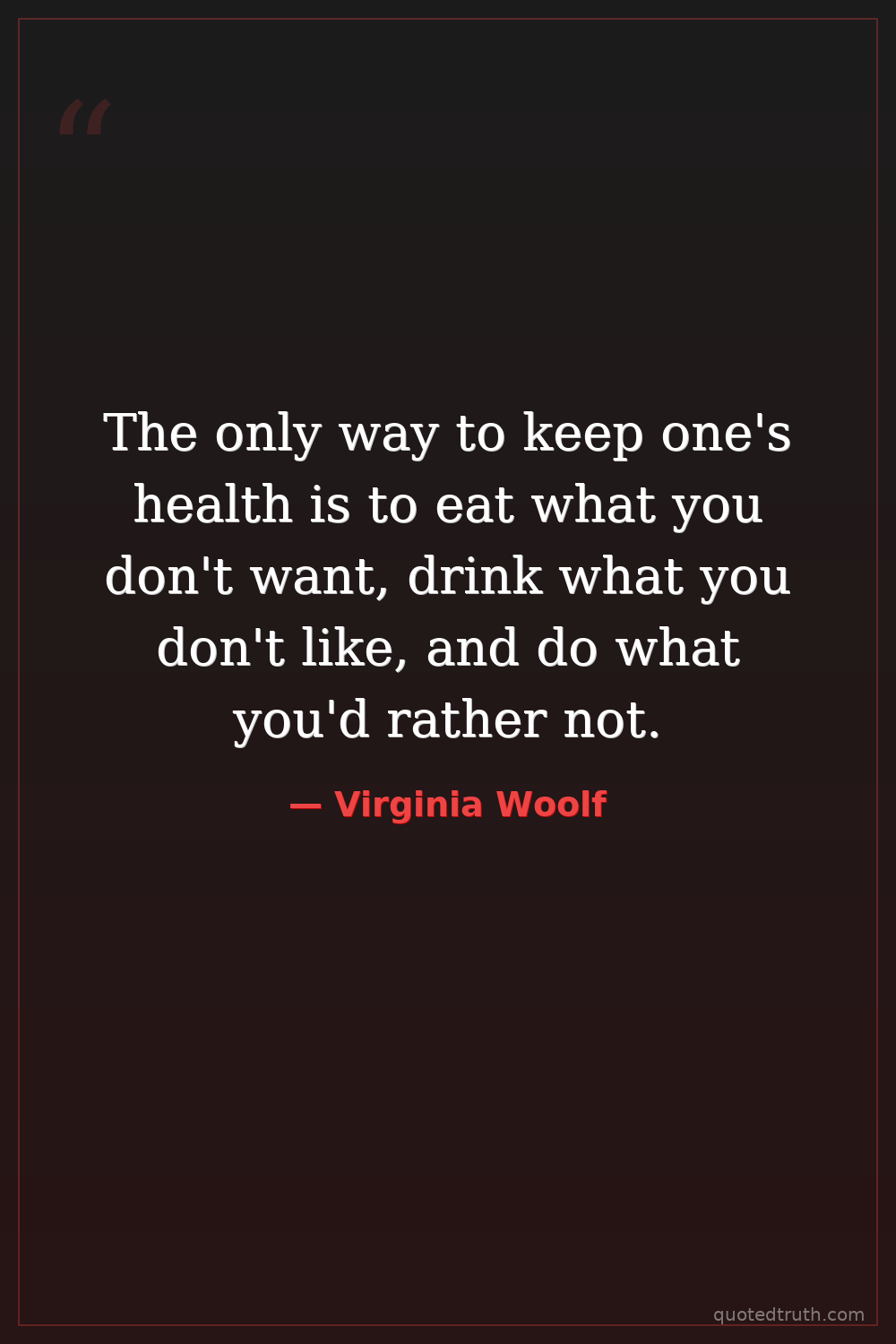 The only way to keep one's health is to eat what you don't want, drink what you don't like, and do what you'd rather not.
