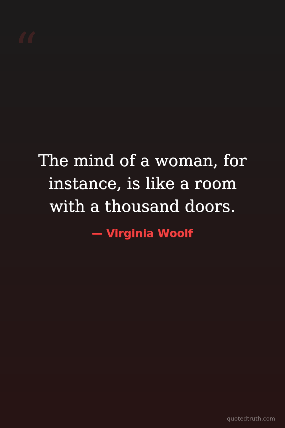 The mind of a woman, for instance, is like a room with a thousand doors.