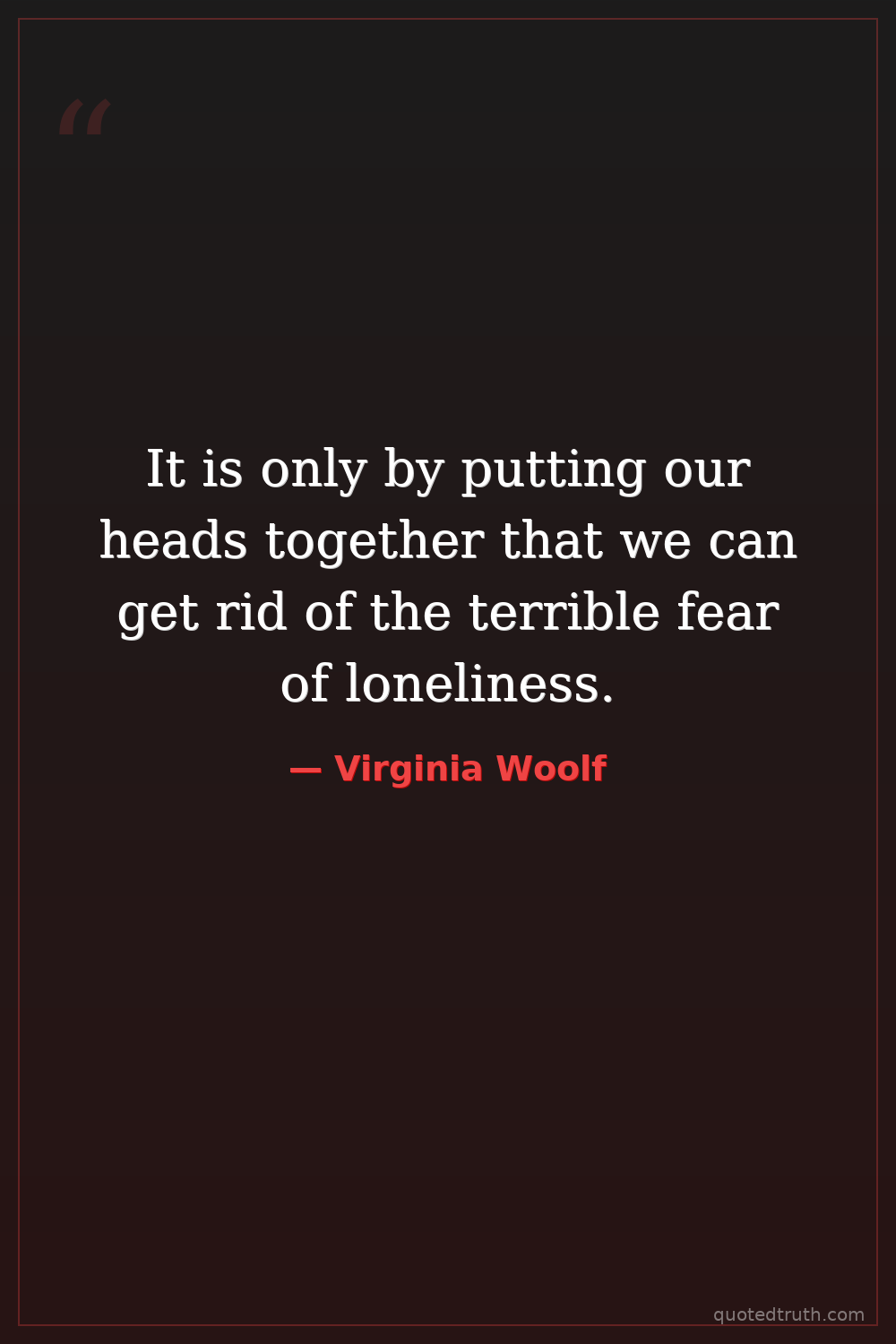 It is only by putting our heads together that we can get rid of the terrible fear of loneliness.