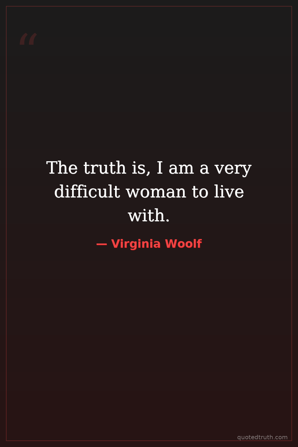The truth is, I am a very difficult woman to live with.