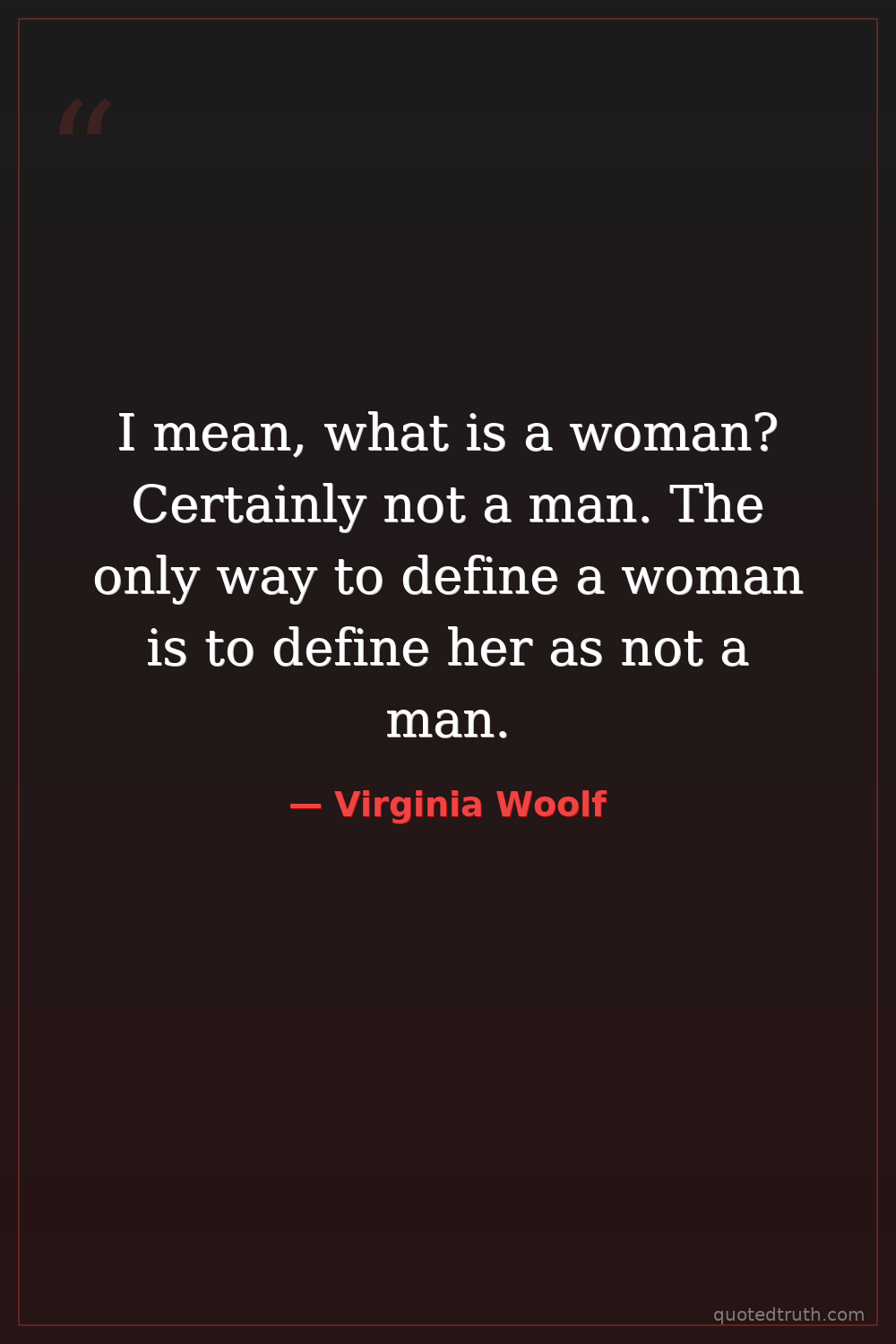 I mean, what is a woman? Certainly not a man. The only way to define a woman is to define her as not a man.