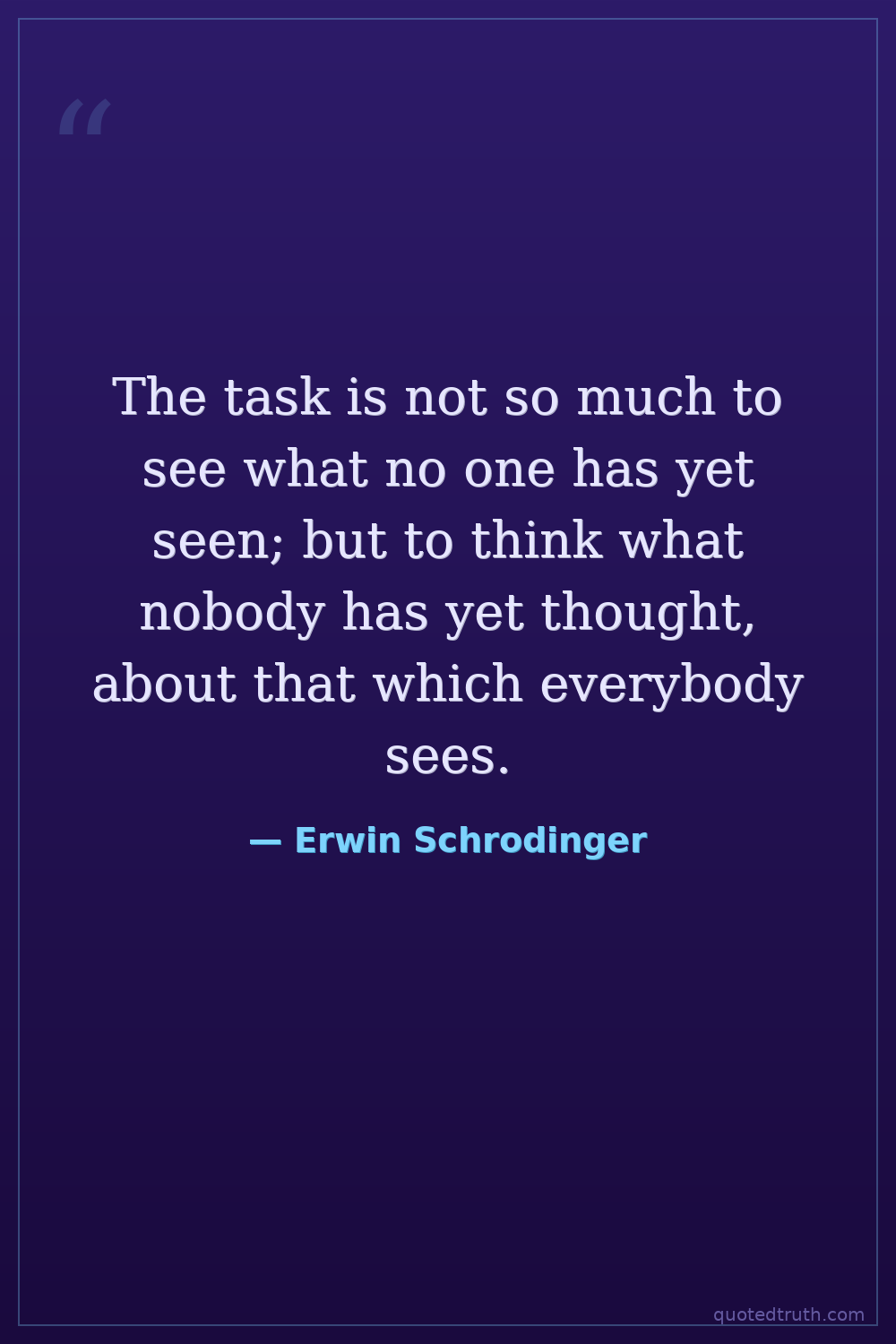The task is not so much to see what no one has yet seen; but to think what nobody has yet thought, about that which everybody sees.