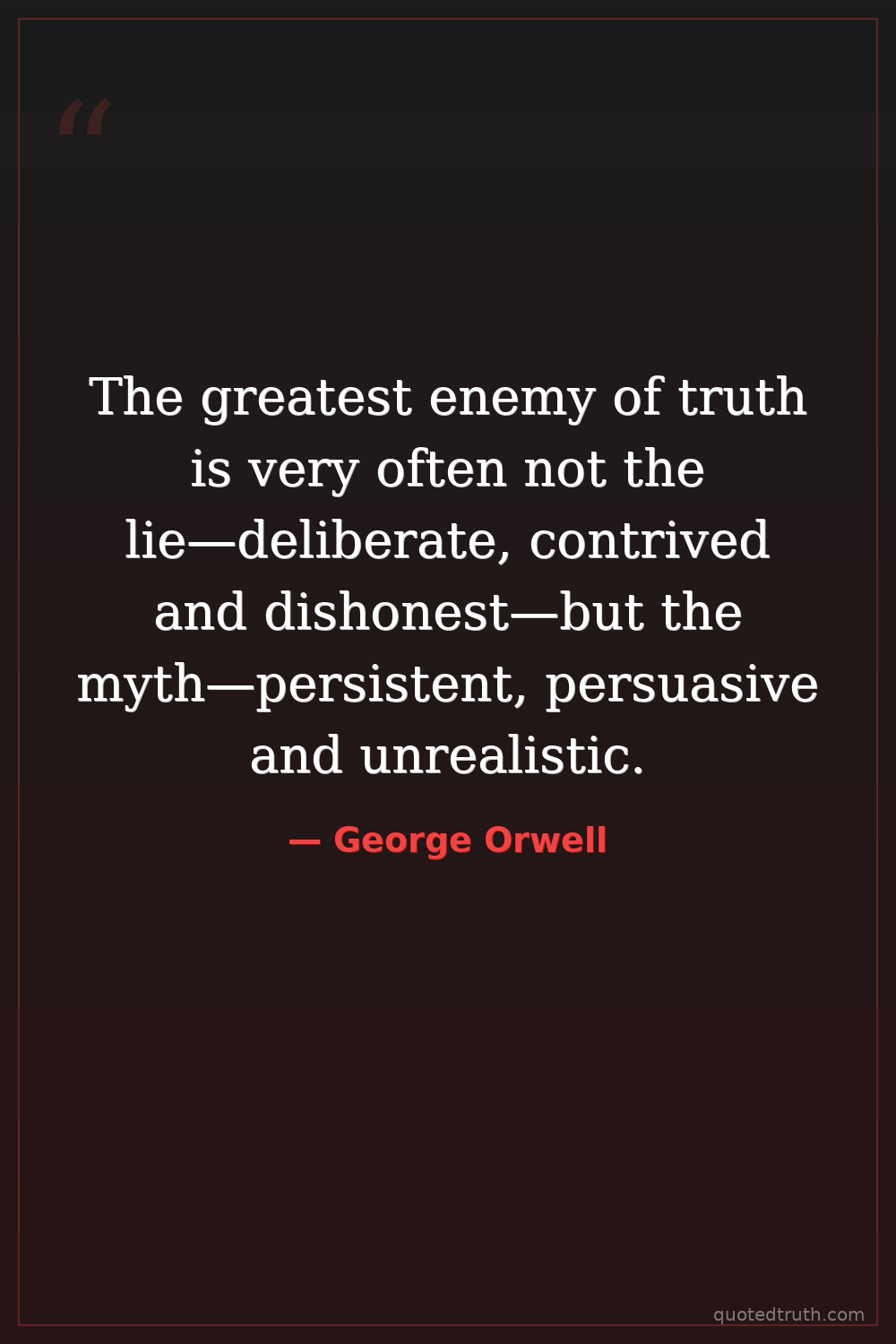 The greatest enemy of truth is very often not the lie—deliberate, contrived and dishonest—but the myth—persistent, persuasive and unrealistic.
