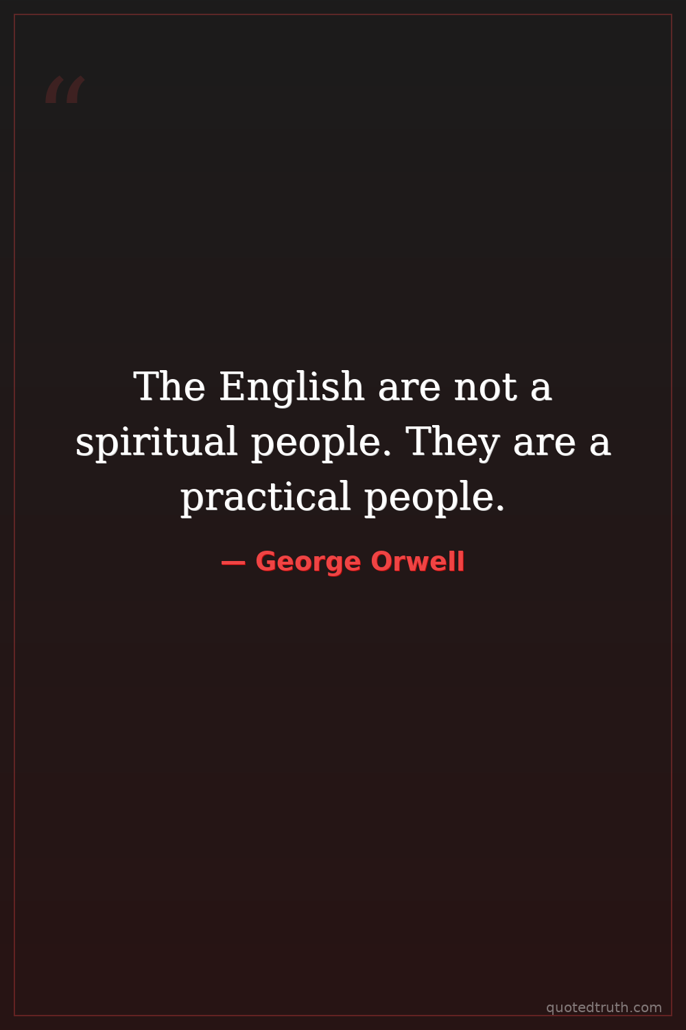 The English are not a spiritual people. They are a practical people.