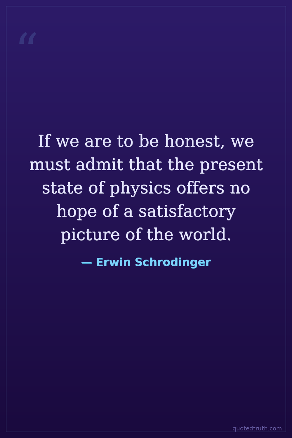 If we are to be honest, we must admit that the present state of physics offers no hope of a satisfactory picture of the world.