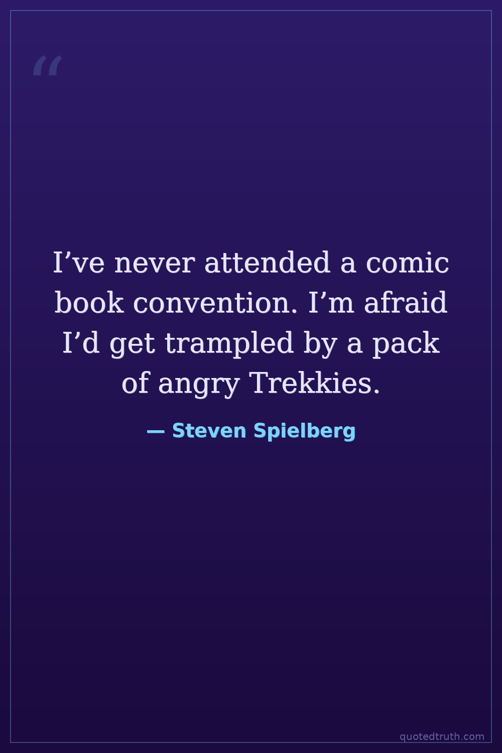 I’ve never attended a comic book convention. I’m afraid I’d get trampled by a pack of angry Trekkies.