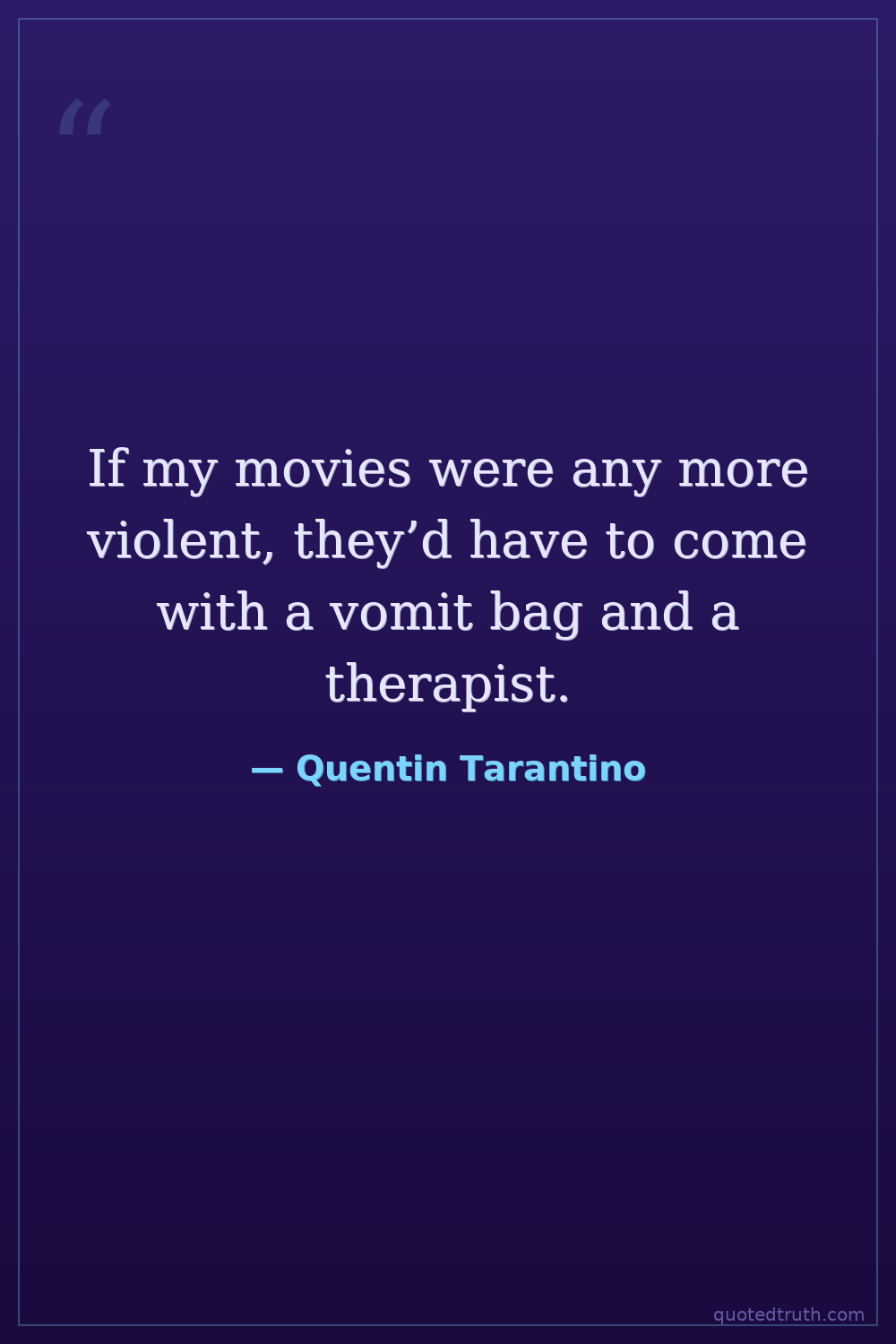 If my movies were any more violent, they’d have to come with a vomit bag and a therapist.