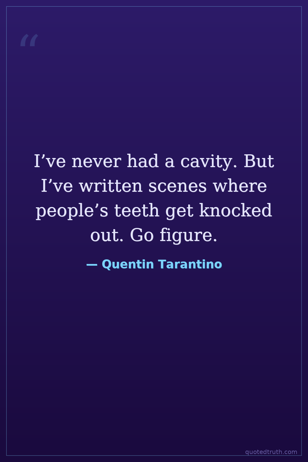 I’ve never had a cavity. But I’ve written scenes where people’s teeth get knocked out. Go figure.