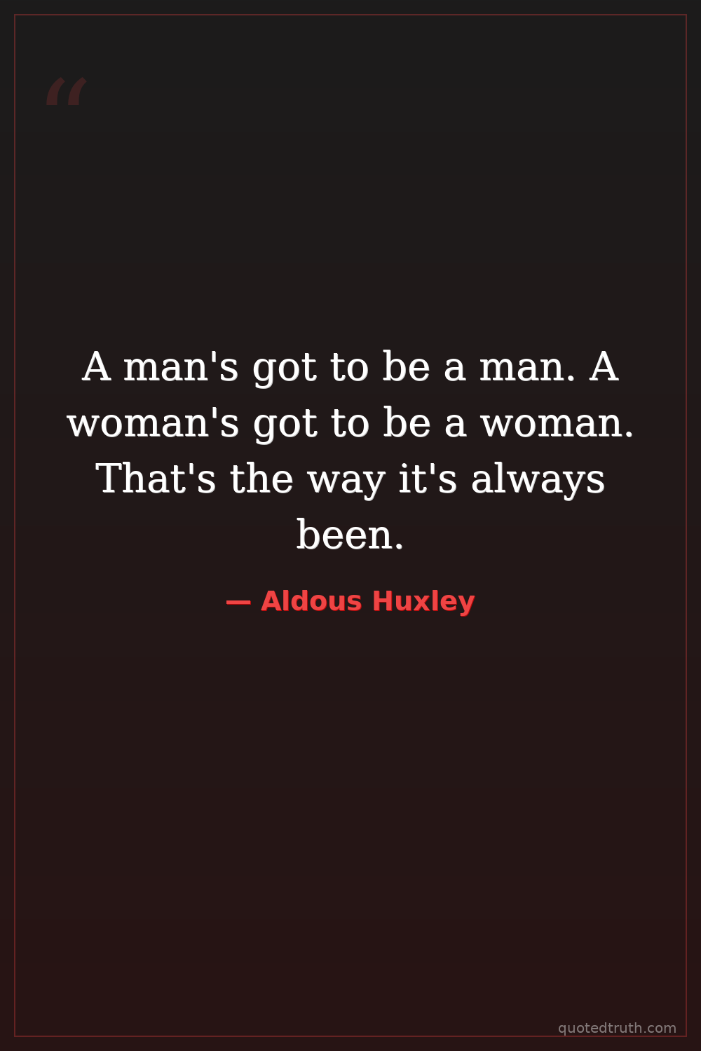 A man's got to be a man. A woman's got to be a woman. That's the way it's always been.