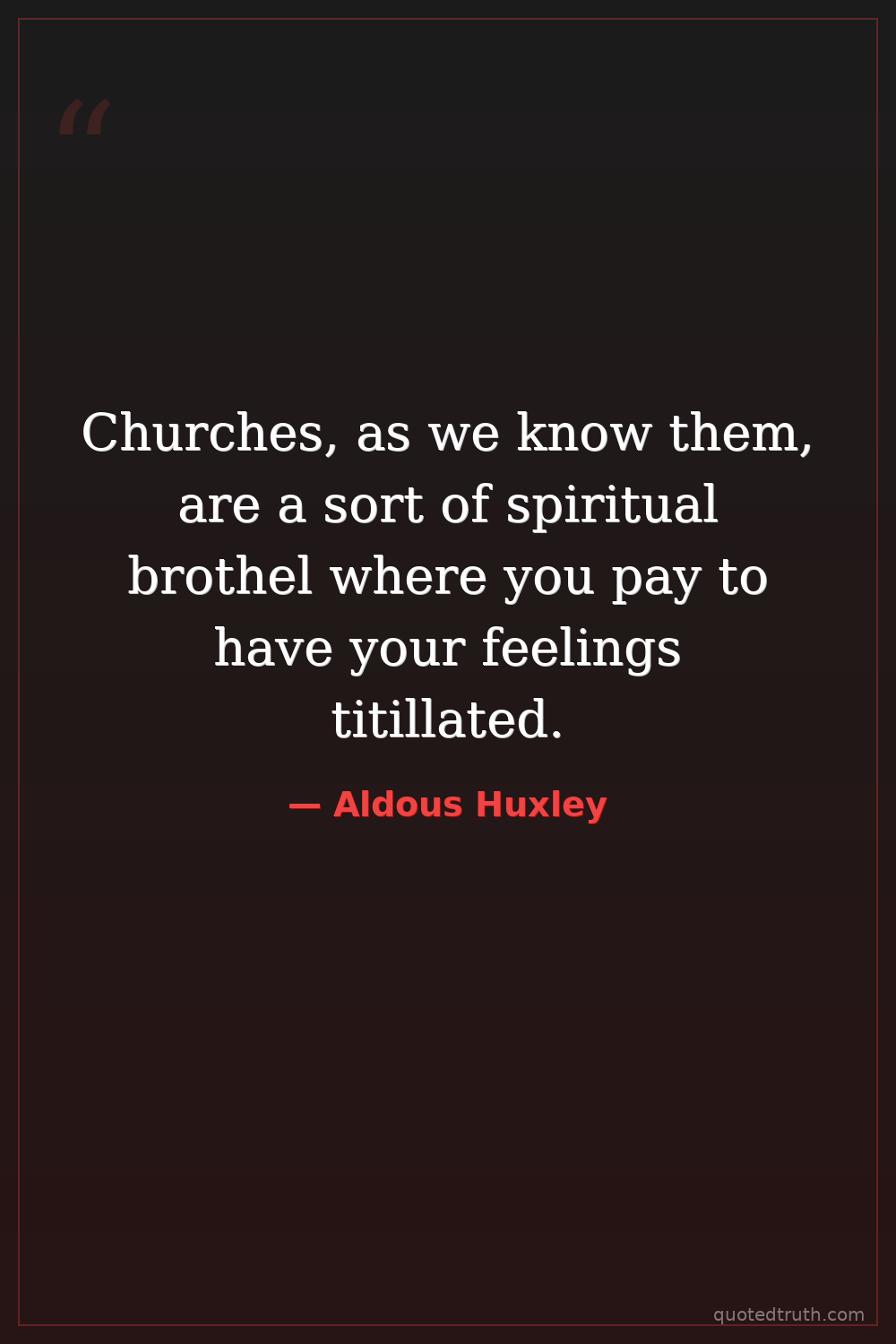 Churches, as we know them, are a sort of spiritual brothel where you pay to have your feelings titillated.