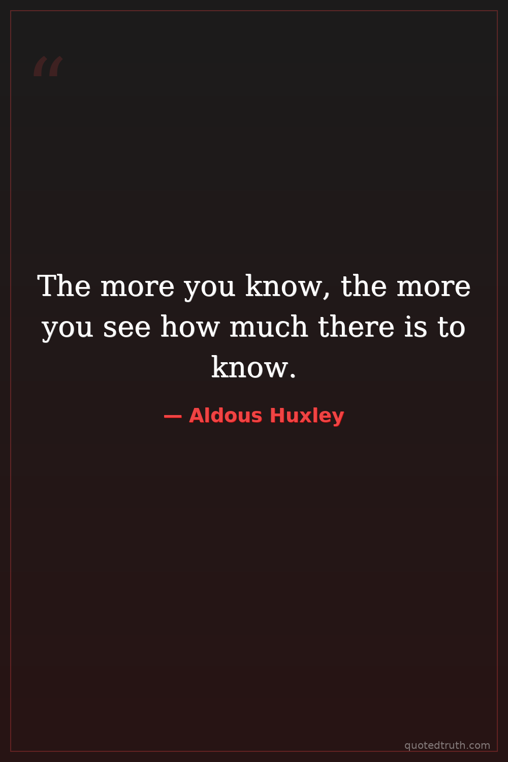 The more you know, the more you see how much there is to know.