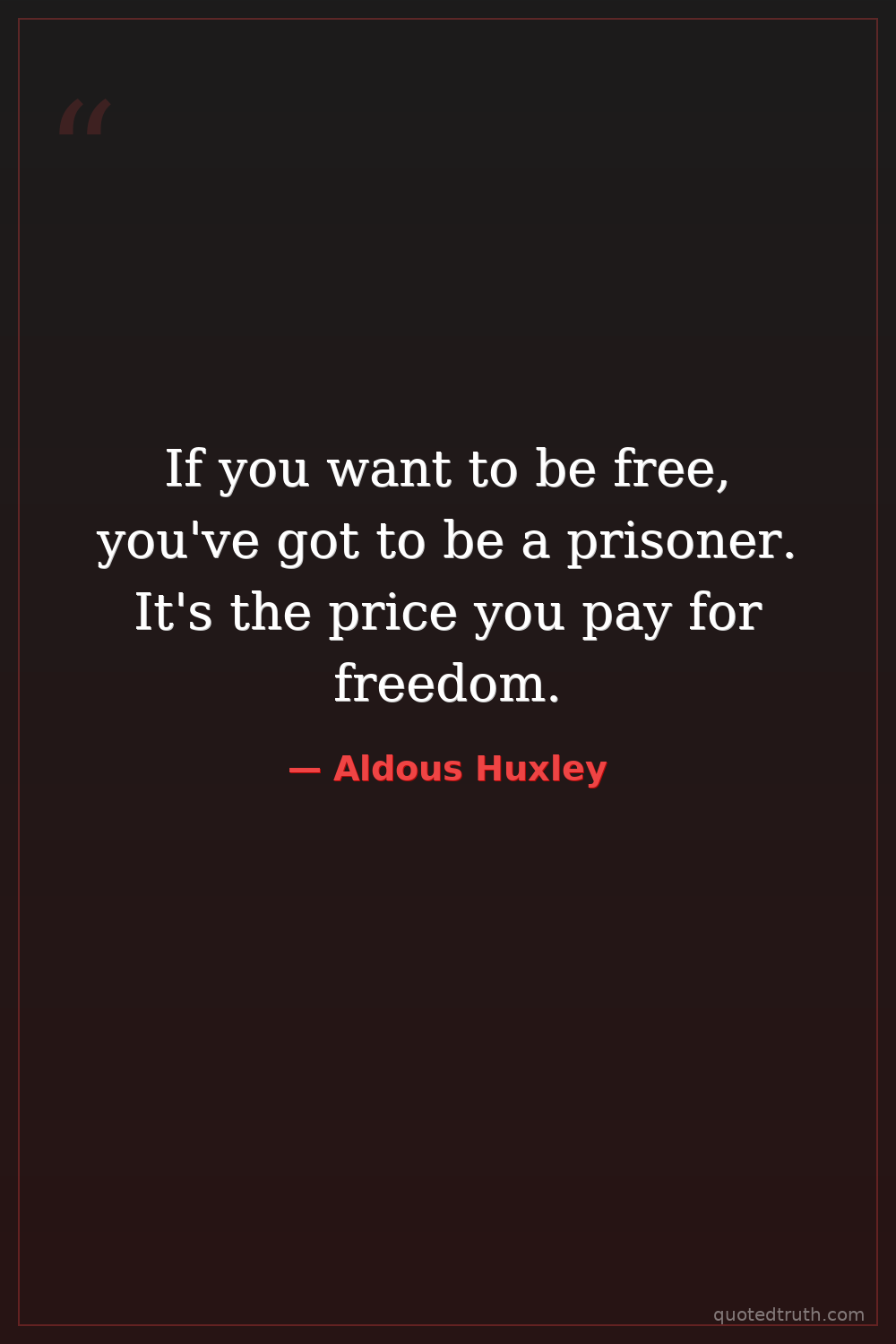 If you want to be free, you've got to be a prisoner. It's the price you pay for freedom.