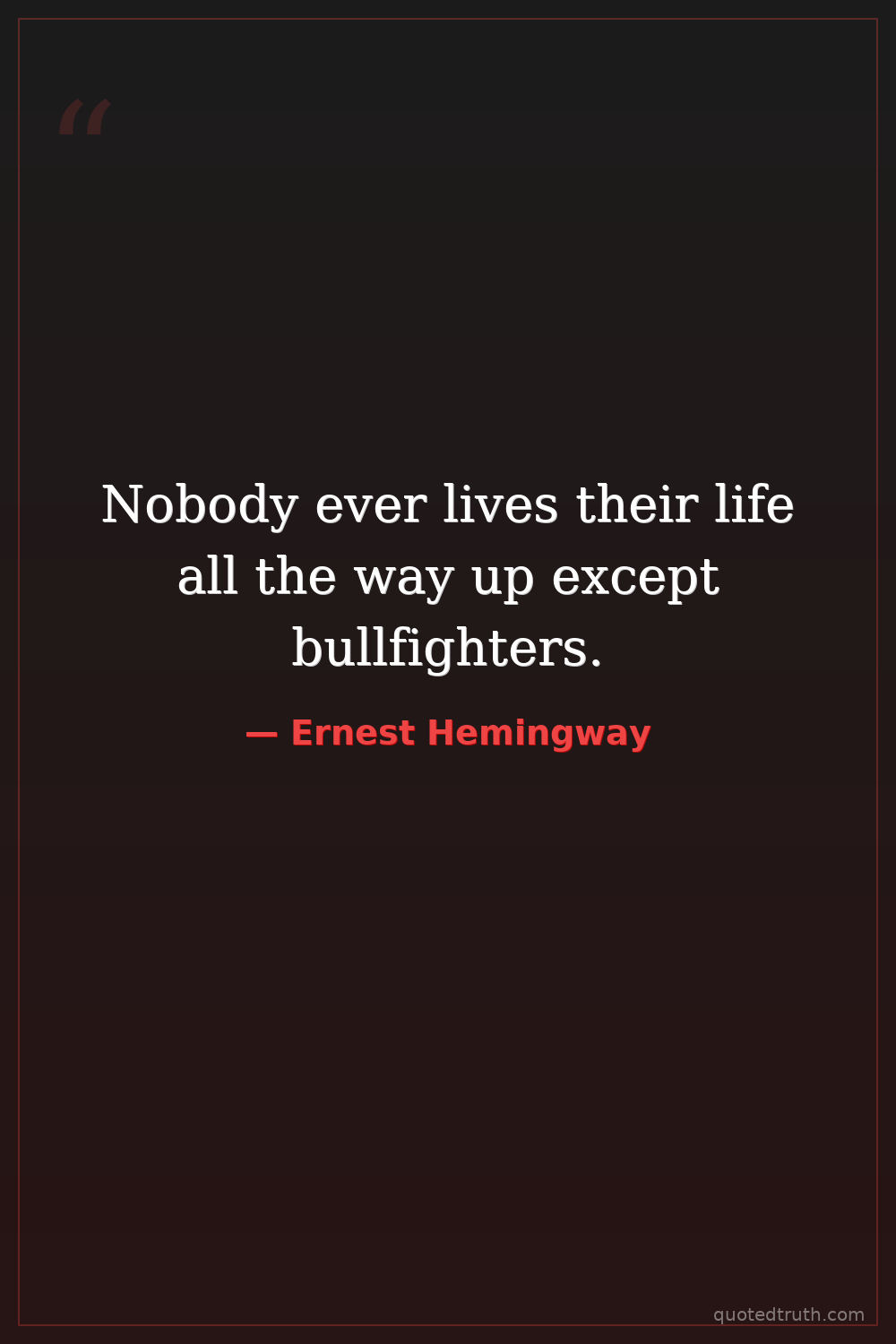 Nobody ever lives their life all the way up except bullfighters.
