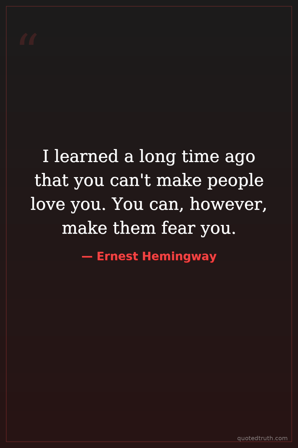 I learned a long time ago that you can't make people love you. You can, however, make them fear you.