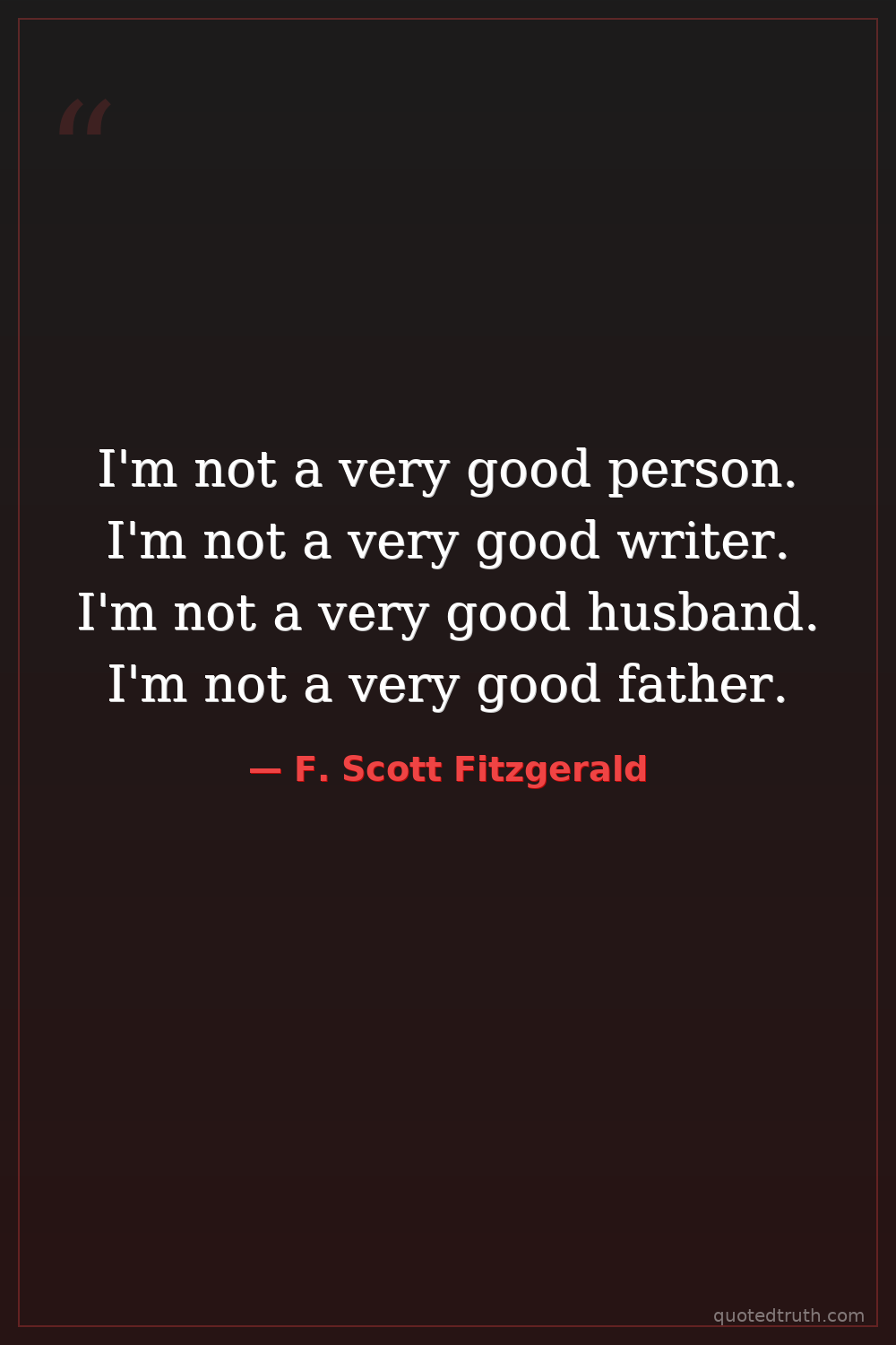 I'm not a very good person. I'm not a very good writer. I'm not a very good husband. I'm not a very good father.