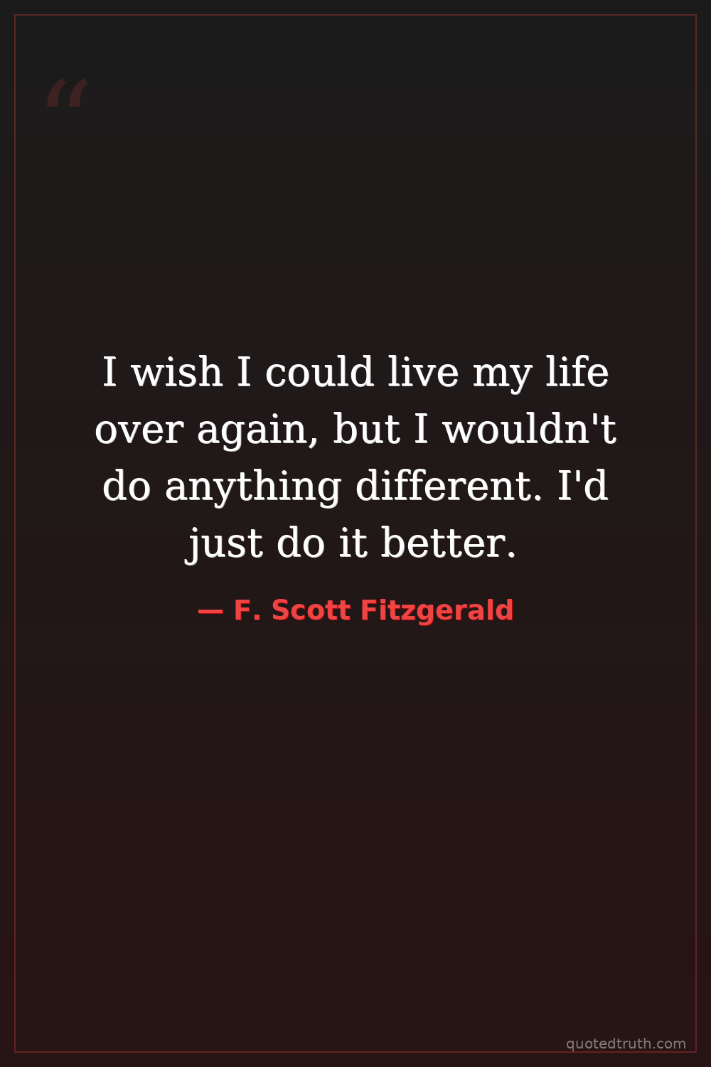 I wish I could live my life over again, but I wouldn't do anything different. I'd just do it better.