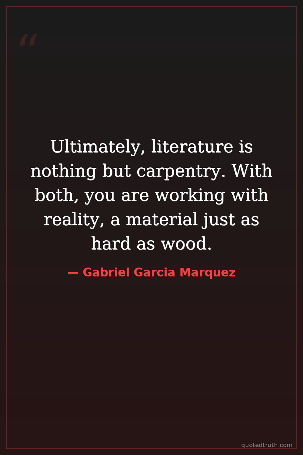 Ultimately, literature is nothing but carpentry. With both, you are working with reality, a material just as hard as wood.