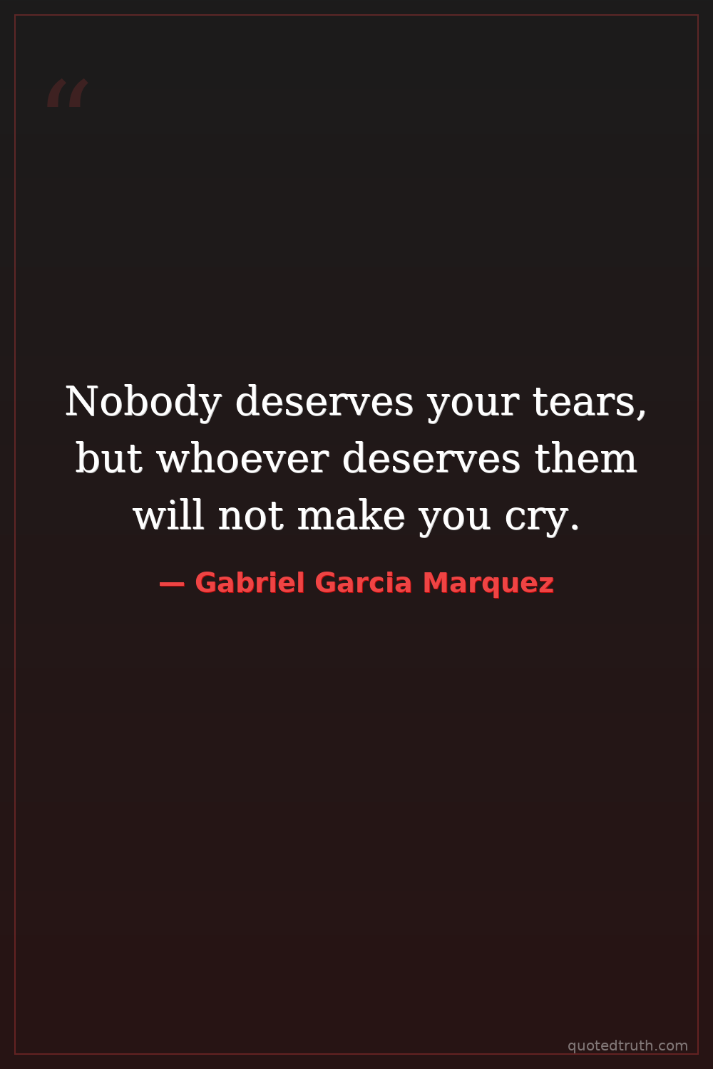 Nobody deserves your tears, but whoever deserves them will not make you cry.